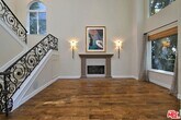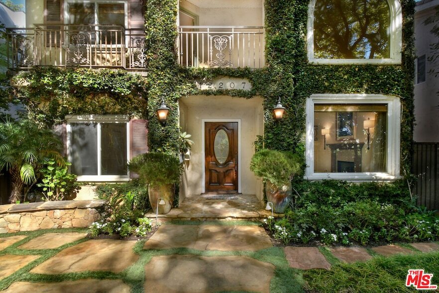 Located on a picturesque, tree-lined street in the heart of the coveted Silver Triangle, this custom-built newer home features an inviting gated courtyard and a detached guest house perfect as a home office or studio. Step inside to a thoughtfully designed floorplan with soaring ceilings and expansive picture windows that bring in natural light. Highlights include hardwood floors, an elegant living room with a mantled fireplace, and a separate formal dining room. The brand-new center island kitchen boasts built-in stainless steel appliances, including double ovens, refrigerator and a Wolf 5 burner gas range. A breakfast bar with seating for four opens to the family room, which features a second fireplace and French doors leading outside. The home offers a downstairs bedroom and full bath, plus three additional bedrooms upstairs. The spacious primary suite includes a luxurious bathroom with dual vanities, a spa tub, and a glass-enclosed shower. There is also a large walk-in closet and French doors opening to a private terrace with treetop views. The upstairs front bedroom also features a covered outdoor terrace. Professionally landscaped gardens surround the private backyard, complete with a BBQ island, fountain, and private entrance to the approximately 600 sq. ft. guest house/office with high ceilings and a bathroom. The finished two-car detached garage includes an EV charger. Additional features include three-zone high-efficiency central heating and air, a Control4 smart home system, new Nest thermostats, and an updated alarm system. Located south of the Boulevard, just moments from the best shops and restaurants Studio City has to offer. Carpenter School is right around the corner, and there is easy access to the city and major studios. A beautiful and unique property, move-in ready and waiting to welcome you home.