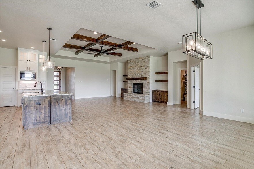 Welcome home to the highly sought after Crown Valley Estates in Aledo ISD! This stunning 4-bed, 2.5 half bath home offers an idyllic lifestyle with breathtaking views of the golf course and surrounding tree lined hills right from your backyard. Step inside to discover a beautiful custom interior featuring coffered ceilings that add character and charm. The open-concept living room seamlessly flows into the spacious sunlit kitchen, creating the perfect space for entertaining or family gatherings. The kitchen boasts ample cabinet space, making it a chef's delight! The split bedroom layout ensures privacy and comfort for everyone. Enjoy outdoor living at its finest with a covered patio that overlooks the expansive golf course views ideal for morning coffee or evening relaxation. Conveniently located just outside Fort Worth with easy access to I-20 and just around the corner from Lake Weatherford.