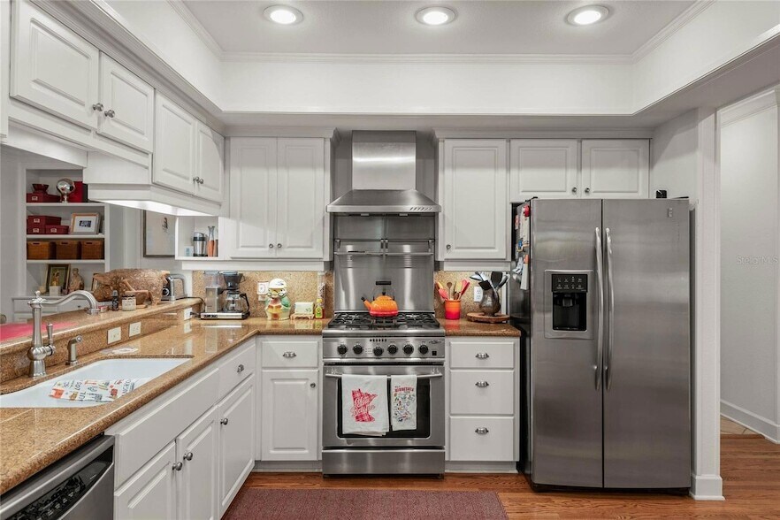 Enjoy peaceful lakefront living in this beautifully maintained, fully furnished (unfurnished option available) single-story home overlooking Lake Lancaster. Timeless character meets comfortable living with original hardwood floors, a wood-burning fireplace, and serene water views from the living room. The open layout connects the kitchen, dining area, and spacious family room ideal for everyday living and entertaining. The kitchen features granite countertops, a gas range, and ample cabinetry, while built-in desks throughout the home provide flexible work-from-home spaces. A half bath and dedicated laundry room are conveniently located off the kitchen. The private bedroom wing includes three bedrooms and two full bathrooms. Outdoors, enjoy a covered brick patio overlooking the pool, spa, and fully fenced backyard with mature landscaping. Located in the established Lancaster Park neighborhood with easy access to downtown Orlando, ORMC, and I-4. Lawn and pool maintenance included schedule your private viewing today! To apply please go to