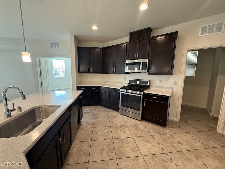 This beautifully designed 4 bedroom, 2.5 bath home is located in the highly desirable, gated Paseos community of Summerlin and offers breathtaking Las Vegas Strip views. The open floor plan features tile flooring throughout the main level and all wet areas, creating a sleek and low-maintenance living space. The kitchen is thoughtfully appointed with maple cabinetry, white quartz countertops, and stainless steel appliances, perfect for both everyday living and entertaining. Upstairs, the spacious primary suite includes a private balcony to enjoy the views, while the primary bath offers dual sinks and a separate custom marble shower. Additional highlights include a versatile loft, a covered backyard patio with lawn, and a 2-car garage with paver driveway. This home combines style, comfort, and an unbeatable location in one of Summerlin s most sought-after neighborhoods.