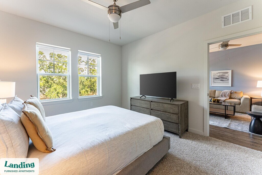 Landing offers flexible lease terms from weeks to months. Please always visit our website or contact us for the latest pricing & availability. Stay longer, save more: 6-Month Minimum base rent: starts at $1710/mo 12-Month Minimum base rent: starts at $1810/mo Landing offers flexible leases across a network of over 35,000 fully-furnished apartments throughout 375+ cities so you can rent on your terms, practically anywhere, and avoid the hassle of paying deposits or application fees. Visit to learn about all the benefits of a Landing membership, see our competitive up-to-date pricing, explore available apartments, take virtual tours, and make reservations online without jumping through traditional rental hoops. Landing's apartments at Solaris at Kissimmee are designed for comfortable, easy living, with the ability to stay as long as you like. Experience living with Landing Every apartment is outfitted with all the modern essentials including: custom-designed furnishings, a fully-equipped kitchen with deluxe stainless steel appliances, a gourmet coffee maker, premium linens, Smart TVs, and incredibly fast, reliable internet for working from home. When you live with Landing, you'll enjoy a hassle-free experience with the added benefit of 24/7 access to our dedicated member experience team. Some of the nitty-gritty: a background check and proof of income are required; we're completely smoke-free; bundled utility packages and pricing vary based on length of stay; pet-friendly options available; listed price reflects a 12-month minimum stay.