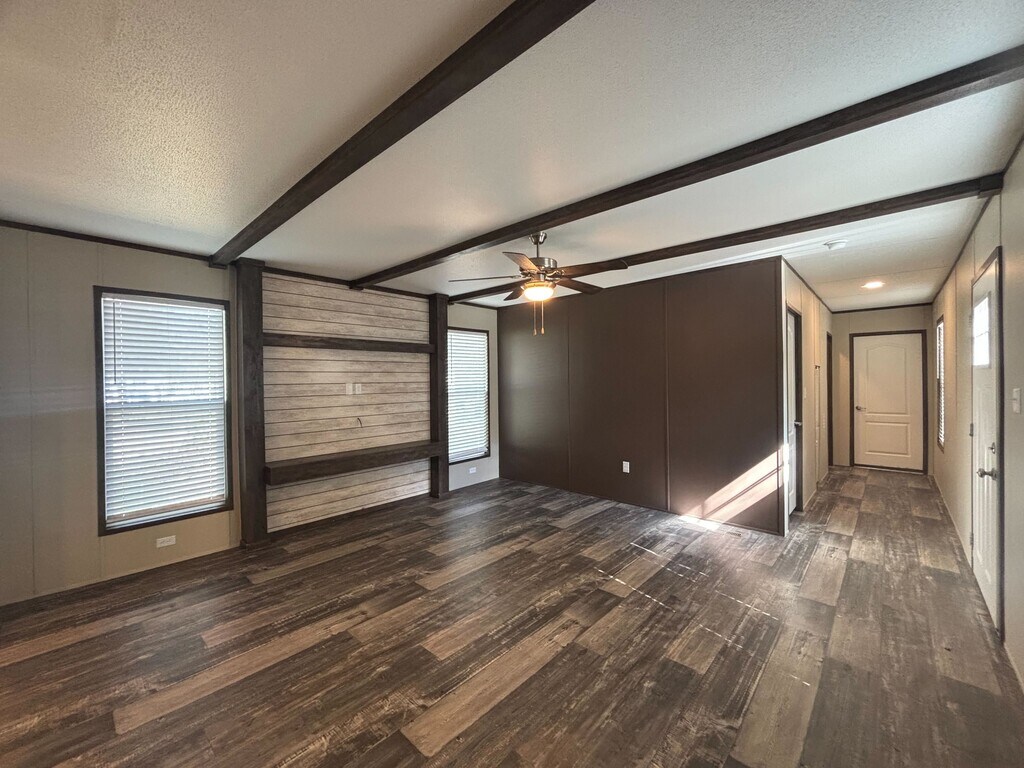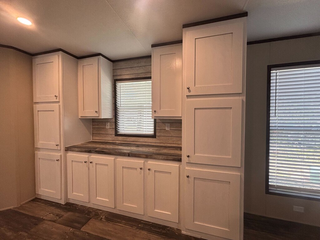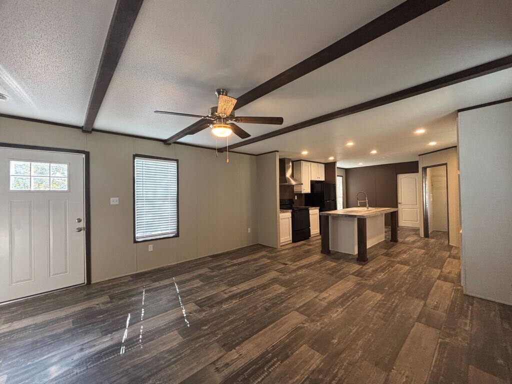 Step into comfort and style with this beautiful 3 bedroom 2 bathroom home nestled in the peaceful community of Conroe Estates. Set on a spacious shaded lot, this home offers the perfect balance of tranquility, modern design, and affordability. As you enter, you will be welcomed by abundant natural light streaming through large energy efficient windows, illuminating the open and airy floor plan. The living room exudes warmth and sophistication, featuring a custom built in entertainment center that provides the perfect spot for your mounted TV and cozy movie nights. The open concept kitchen is the heart of the home, designed for both functionality and flair. Enjoy a large kitchen island ideal for meal prep or casual seating, ample counter space, and an entire wall of custom cabinetry perfect for your dream coffee bar setup. Adjacent to the kitchen, you will find a dedicated dining area and a full size laundry room for everyday convenience. Your primary suite is a private retreat, offering generous space for oversized furniture and a spacious walk in closet. The en suite bathroom delivers a spa like experience, complete with a deep soaking tub, double vanity sinks, and a two seater glass shower surrounded by elegant finishes. On the opposite side of the home, two additional bedrooms and a full bathroom provide privacy and comfort for family or guests. This home was built with style, efficiency, and value in mind, and it is waiting for you.