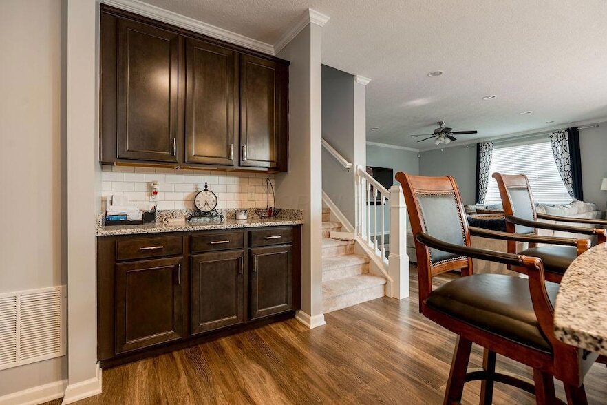 Beautifully Maintained 4-Bedroom 2 & 1/2 Bath Home in Prime Location! This spacious and versatile home features 4 generously sized bedrooms, bathrooms with granite countertops and a convenient 2nd-floor laundry room. The main level offers a well-appointed kitchen, den, formal dining room, and eat-in area perfect for everyday living and entertaining. Step outside to a private custom paver patio oasis with beautiful gazebo, ideal for outdoor dining, relaxing, or gatherings. The layout offers room to grow and enjoy every season comfortably. Located within walking distance to Veterans Park and the YMCA, and just minutes from restaurants, shops, and more. Don't miss this opportunity schedule your showing today!