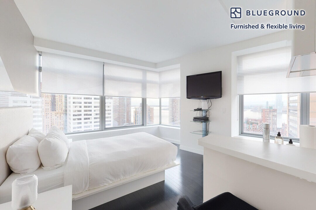 Discover the best of New York, with this studio apartment in Financial District with high floor views over the city. It’ll be easy to simply show up and start living in this contemporary furnished apartment with its fully equipped kitchen, lovely living room, and our dedicated, on-the-ground support. (ID #NYC1363) The advertised rate of $4,540/month is the lowest available price, based on a 1 month(s) and 25 day(s) stay with a move-in date of April 1, 2026. If you’re looking for a 1-year stay, the rate is $4,580/month. Rates vary depending on the duration of stay, season, and other parameters. For exact pricing and additional pricing components, please visit our website and enter your desired move-in and move-out dates. The rate is applicable when billed upfront; it can be higher if billed in multiple payments. Brokers are welcome to reach out. Were you looking for an unfurnished lease? Try Blueground instead and upgrade from unfurnished to furnished living: - Furnished at rates comparable to unfurnished - No setup or furniture costs - save thousands - Move-in ready - save time, just bring your suitcase Designed with you in mind Thoughtfully designed with bespoke finishes, modern furnishings, and a fully equipped kitchen, you’ll enjoy that “I’m home” feeling with this Blueground apartment. Whether you’re lounging in your beautiful living room streaming the latest and greatest entertainment on the smart TV or premium wireless speaker, or getting some well-earned rest on the superior quality mattress with fully stocked linens, you’ll fall in love with everything this Financial District apartment has to offer. This apartment also offers in-apartment laundry. Sleeping arrangements Queen Bed, 63in/160cm Amenities Building amenities unique to this studio apartment include an on-site: - Doorman - Dryer - Elevator - Washing machine - Pets allowed Arrival and ongoing support The entire apartment is yours to enjoy! Throughout your stay, you’ll have access to our Client Experience team through the Blueground App. You can schedule additional cleanings, submit maintenance requests, and view our neighborhood recommendations with just a few taps. We’ll share all details upon confirmation of your stay. Ideally Located This furnished apartment is located in the Financial District, also known as FiDi. Home to Wall Street, One World Trade Center, the South Street Seaport, and Bowling Green it is a constant hub of activity. During the week the sidewalk is always bustling and the restaurants are filled with professionals. The glittering skyscrapers and well-known landmarks make this one of the city’s most recognizable and historic neighborhoods. By subway, Times Square is about 20 minutes away. Other things to note Building amenities may have an extra cost. This Blueground apartment has flexible lease options, allowing you to book it for one month, a year, or more. Pets are welcome, though weight limits and breed restrictions apply and may incur fees. Brokes CYOF. We take great pride in ensuring every photo displayed is shot in our own units with our actual furnishings. That said, we regularly refresh our decor and furniture arrangement, which may differ from what’s pictured. Also note - Other apartments in this building are undergoing renovations, and you may hear construction noise inside your apartment from time to time - The apartment's building is undergoing renovations, and you may hear construction noise inside your apartment from time to time - Some apartments in this building are undergoing remodeling; construction sounds may occasionally be heard [SI]