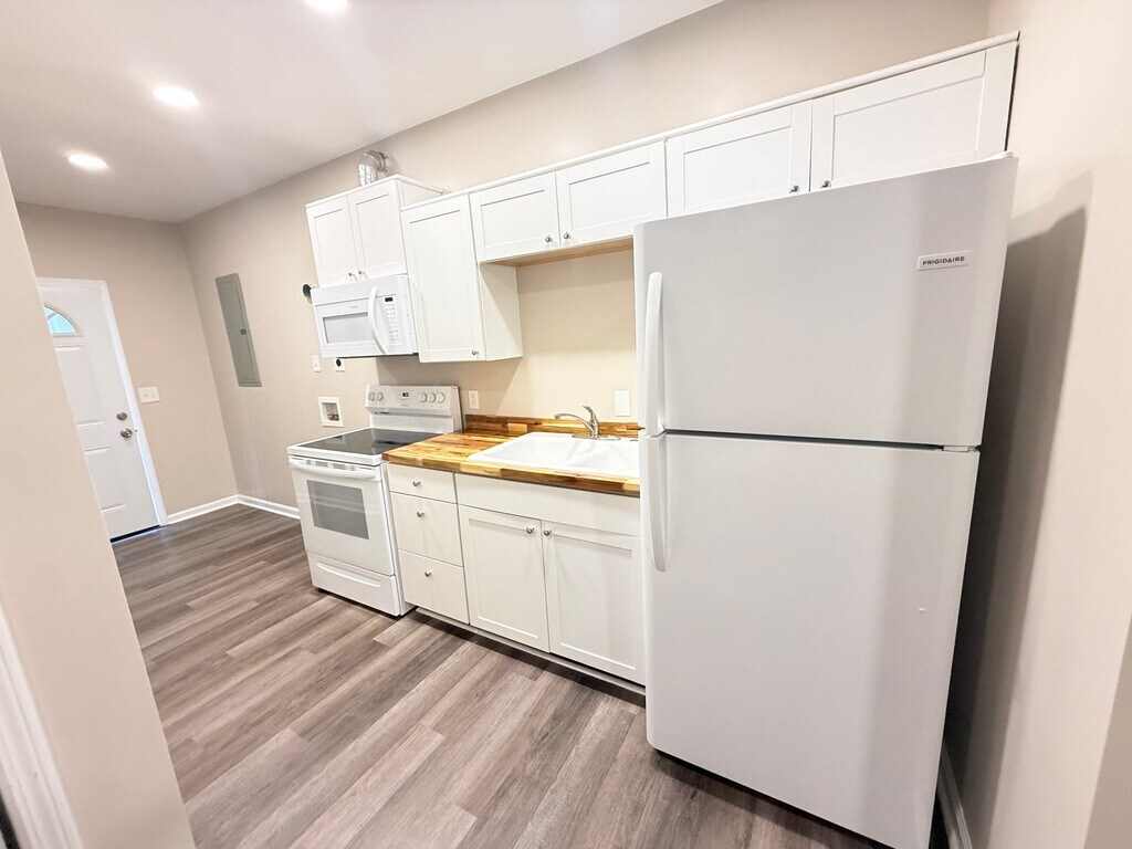 Property Id: 2487487 Cozy, recently remodeled 1 bed / 1 bath studio in well maintained triplex. Unit features an open floor plan with high ceilings, butcher block countertops, new appliances, and off-street parking in a private parking area behind the triplex. Unit has hookups for a stackable washer/dryer. WATER/SEWER UTILITIES AND LAWNCARE INCLUDED. Great location, near downtown New Albany and minutes from the Sherman Minton bridge and all the great shopping, dining, and entertainment that New Albany and Louisville has to offer. Minimum rental standards and policies are below. $890 deposit Water/Sewer paid by owner Electric/Cable/internet paid by tenant Lawncare provided by owner No pets allowed No smoking All applicants will be screened for income, rental history and credit