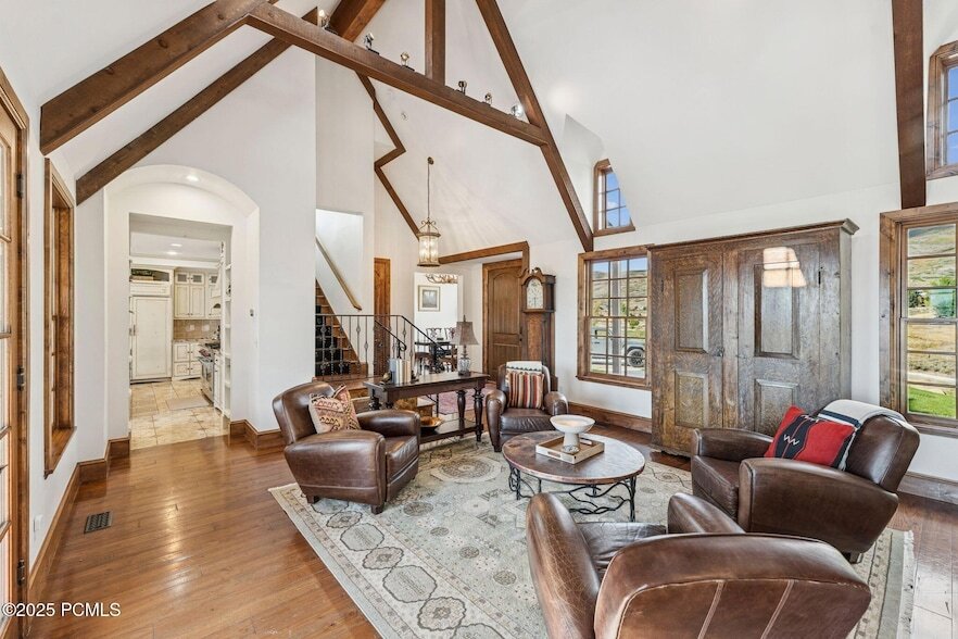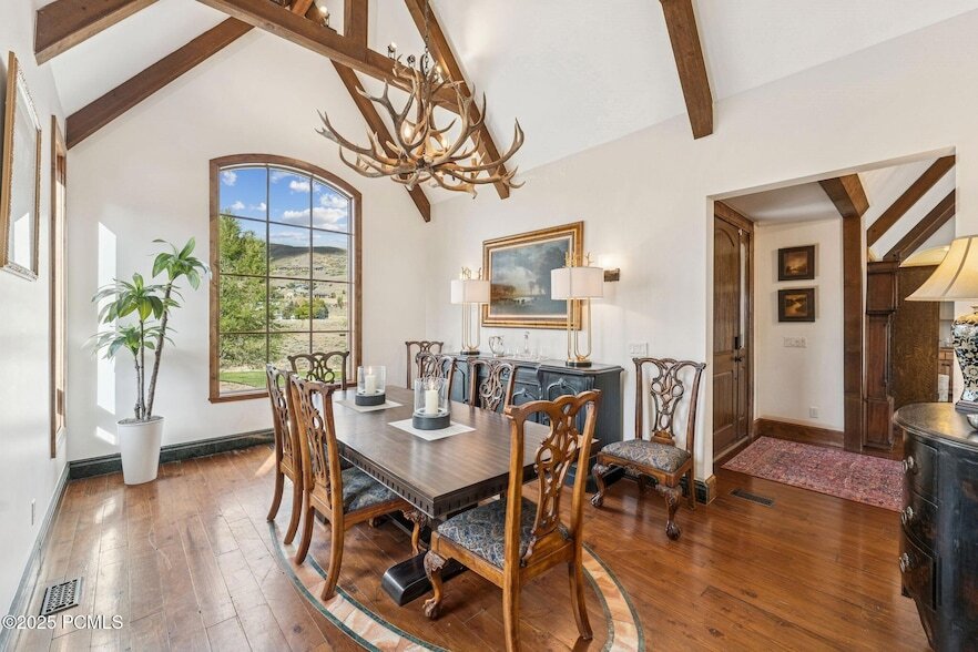 Perched atop a private 5-acre estate, this exquisite custom home offers a rare blend of timeless elegance, modern luxury, and breathtaking panoramic views of Mount Timpanogos, Deer Creek Reservoir, and the entire Heber Valley. With the explosive growth of the new East Village at Deer Valley and the arrival of world-class destinations like the Four Seasons, Grand Hyatt, Ameyalli, and Marriott's revitalization of Homestead Crater, this property is perfectly positioned to enjoy the best of Utah's mountain lifestyle. This custom-designed residence features four bedrooms and expansive living spaces ideal for both intimate gatherings and grand entertaining. The gourmet kitchen is a chef's dream, outfitted with Wolf and Sub-Zero appliances, a double oven, gas range, and a butler's pantry/laundry area for seamless hosting. Vaulted ceilings, Italian marble, rich hardwood floors, and 6 stunning fireplaces create a warm and inviting ambiance throughout. The primary suite is a private retreat with a spa-inspired bath, heated marble floors, a generous walk-in closet, and direct access to a serene courtyard patio with its own fireplace. The walk-out lower level offers 11-foot ceilings and includes a theater room with tiered seating, game room, wine cellar, bunk room, and additional bedrooms and bathrooms perfect for guests or multi-generational living. Outdoor living is elevated with multiple patios and balconies that frame the stunning natural surroundings. Whether you're enjoying a quiet morning coffee, relaxing in the outdoor sauna, or hosting a sunset soiree, the views are simply unforgettable. Located just minutes from the new East Village Gondola, four public golf courses, world-class fly-fishing, and three pristine reservoirs, this estate offers unparalleled access to recreation and relaxation. You've found your one-of-a-kind mountain retreat to enjoy the upcoming winter season.