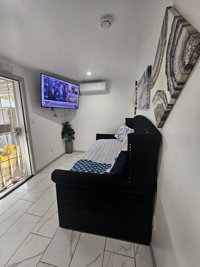 Property Id: 2378781 Private 1-Bedroom Apartment - Approx. 450 sq ft | Ideal for Single Occupancy This cozy and well-maintained 1-bedroom, 1-bath private apartment offers approximately 450 square feet of comfortable living space and is ideal for one occupant seeking a quiet and private environment. The unit features stainless steel appliances, including a refrigerator and stove, along with a functional kitchen area suitable for everyday cooking. The bedroom includes a queen-size bed, and the living area is furnished with a daybed and twin trundle for added comfort and flexibility. A washer and dryer are conveniently located inside the bathroom, providing easy in-unit laundry access. The owner pays water, while gas and electricity are shared. Features include: • Approximately 450 sq ft • 1 bedroom / 1 bathroom • Queen bed in bedroom • Daybed with twin trundle in living room • In-unit washer and dryer • Stainless steel appliances • Refrigerator and stove included • Water included • Gas and electricity shared This unit is best suited for one occupant due to the size of the space. No pets allowed. Perfect for a professional or individual looking for a clean, quiet, and private place to call home.