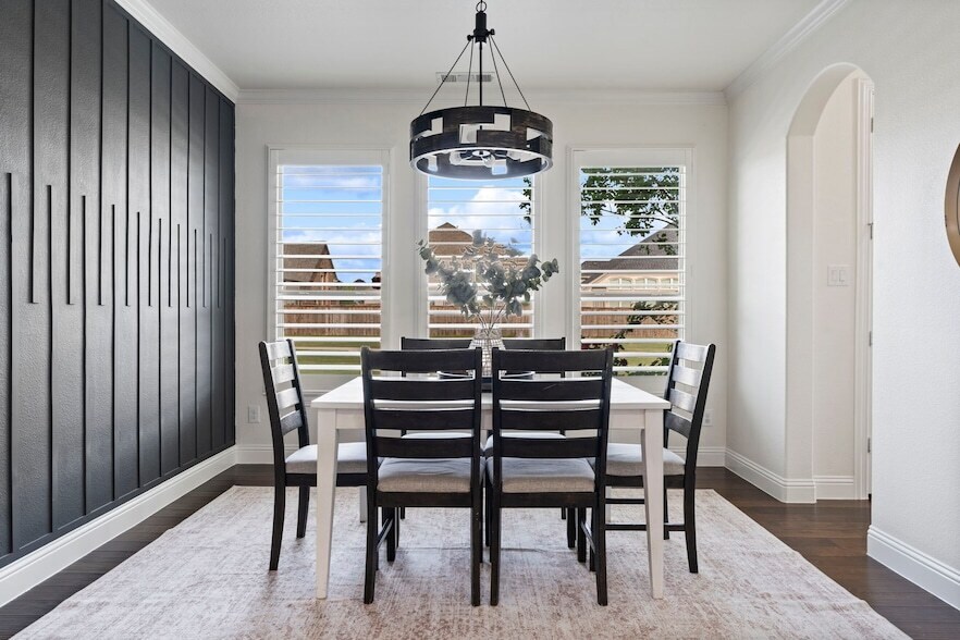 Positioned on a north-facing corner lot in Wylie ISD, this beautifully designed home offers a rare balance of openness, functionality, and thoughtfully layered living spaces, with details that reveal themselves the more you explore. Inside, soaring ceilings and a light-filled layout create an immediate sense of volume and ease. A private front office with built-in shelving provides a quiet, refined space for work or focus, while the main living areas open seamlessly, creating a natural flow for both everyday living and entertaining. At the center of it all, the kitchen anchors the home with upgraded cabinetry, designer backsplash, elevated lighting, a gas cooktop, and a large eat-in island. Open to the living room and breakfast nook, this space was designed for gathering, whether it s a quiet morning or a full house. The main level primary suite offers a peaceful retreat with a well-appointed ensuite bath, including a garden tub, separate shower, and a spacious walk-in closet with direct access to a secondary downstairs bedroom, offering flexibility for a nursery, sitting room, or private extension of the suite. Upstairs is where the home truly expands, beginning with an open family room that serves as a central gathering space, complete with a tucked-away nook featuring a climbing wall for a playful, unexpected touch. A separate media room offers a more private setting for movie nights, with an additional retreat beyond that adds even more flexibility for relaxing, working, or unwinding. The backyard continues the experience with a clean, low-maintenance design featuring a covered patio, extended deck, artificial turf, and tall fencing for added privacy, ready to be enjoyed from day one. Additional features include solar panels, a whole-home water filtration system, a tankless water heater, and permanent Jellyfish exterior lighting, offering everyday convenience, energy efficiency, and effortless curb appeal year-round.