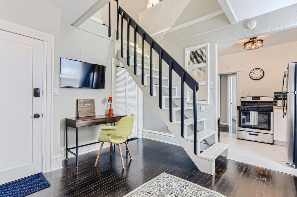Feel at home in this newly renovated two-story 750 sqft two-bedroom apartment located on the second and third floors at 1240 N York St. The apartment boasts two great work-from-home spaces in the den and loft master bedroom, making it ideal for remote work. Enjoy the communal back deck, grill, outdoor dining table, and fenced-in backyard in a safe and walkable neighborhood. This apartment features a comfy queen bed with linens and a fully stocked kitchen. The smart TV allows you to use your own streaming service, and all utilities, parking, and internet are included, valued at $150+/month. Free communal laundry is available in the basement, accessed from the backyard. The apartment includes one dedicated parking space labeled 3S, and street parking is free and available on the block. Pet rent is $90 per dog per month, with a strict no cats policy. Please ensure your dog is added to the reservation to collect the pet rent. Situated just 3 blocks from Cheesman Park and Botanic Gardens and 4 blocks from City Park, this apartment offers a prime location. It's a 5-minute drive to Sprouts Farmers Market, Ideal Market, Whole Foods, and King Soopers, and 5 minutes to Cherry Creek Shopping District. Downtown Denver, RiNo, and LoHi are just 12 minutes away, while Red Rocks is a 30-minute drive and ski resorts are 1 hour and 30 minutes away. Nearby hospitals include St Joseph, Presbyterian St Luke’s, and Rose, all within 7 minutes, and UC Health University of CO and Children’s Hospital CO within 20 minutes. Check-out time is 10 AM, and failure to check out on time will incur a $50 fee for every additional 30 minutes. The apartment is non-smoking and non-vaping, with violation resulting in damage fees. Noise disturbances due to pets, music, and children should be minimized to avoid eviction without refund. Personal property left behind will incur a minimum $50 returned item fee. Maintenance issues will be addressed promptly, but no refunds or rent reductions will be made due to mechanical failures or interruptions of utilities. The apartment offers two great work-from-home spaces in the den and loft master bedroom, equipped with fast internet at 300mbps download and 10mbps upload speeds. A shared router may or may not be in-unit. [SI]
