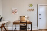 Unit 2 at 1240 N York St is a cozy 350 sqft studio located on the second floor, offering a great bedroom-den layout with a work-from-home workspace. While it lacks a dishwasher, it features a large sink with a drying rack for convenience. Newly renovated and furnished in Spring 2022, this apartment boasts a comfy queen bed with linens and a stocked kitchen. Enjoy the communal back deck with a grill and outdoor dining table, as well as a fenced-in backyard, perfect for relaxation. All utilities, parking, and internet are included, valued at $150+ per month. The apartment comes with a dedicated parking space labeled 2S, and street parking is free and available on the block. Pet rent is $90 per dog per month, with a strict no cats policy. Situated just 3 blocks from Cheesman Park and the Botanic Gardens, and 4 blocks from City Park, this apartment offers a prime location. A short 5-minute drive takes you to Sprouts Farmers Market, Ideal Market, Whole Foods, and King Soopers, while Cherry Creek Shopping District is also just 5 minutes away. Downtown Denver, RiNo, and LoHi are accessible within 12 minutes, and Red Rocks is a 30-minute drive. Ski resorts are about 1 hour and 30 minutes away. Nearby hospitals include St Joseph, Presbyterian St Luke’s, and Rose, all within 7 minutes, and UC Health University of CO and Children’s Hospital CO are 20 minutes away. The property is located on a busier 2-lane road, so there is always traffic, but finding a parking spot on the block is not an issue. Guests control window AC units and ceiling and tower fans, while the host controls central heat. The property is non-smoking and non-vaping, with violation resulting in damage fees. Noise disturbances due to pets, music, and children should be minimized, as many guests work from home. A warning will be given for any reported noise disturbances, with additional disturbances leading to eviction without refund. Check-out time is 10 AM, with a $50 fee for every additional 30 minutes past check-out time. Personal property left behind will incur a minimum $50 returned item fee. The apartment includes a work-from-home workspace, ideal for remote work.