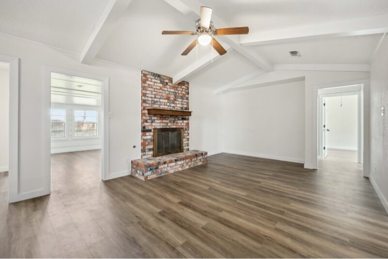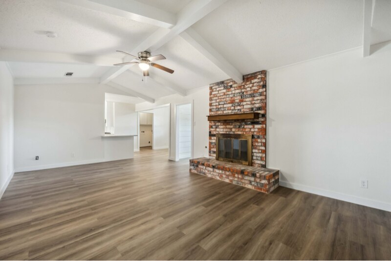 Property Id: 2342225 Nestled in the quiet charm of Triple Bar Estates, this beautifully updated single-story brick home offers not just comfort, but connection. Imagine mornings filled with sunlight streaming through large windows, casting a warm glow across wood-style flooring & crisp white walls. Vaulted ceilings with exposed beams add architectural character, while the rustic brick fireplace anchors t/living room w/a cozy touch. The heart of the home, a bright and modern kitchen, features sleek white cabinetry, stainless steel appliances, & a gas cooktop, all seamlessly flowing into open-concept living spaces. Whether it's casual breakfasts at the bar or festive dinners in the formal dining room, there’s room to create lifelong memories. The bathrooms offer timeless design with subway tile, black fixtures, & abundant storage. Step outside into your private backyard- mature shade trees, & a fenced yard invite laughter-filled nights. It's more than a house—it’s where your story comes true.