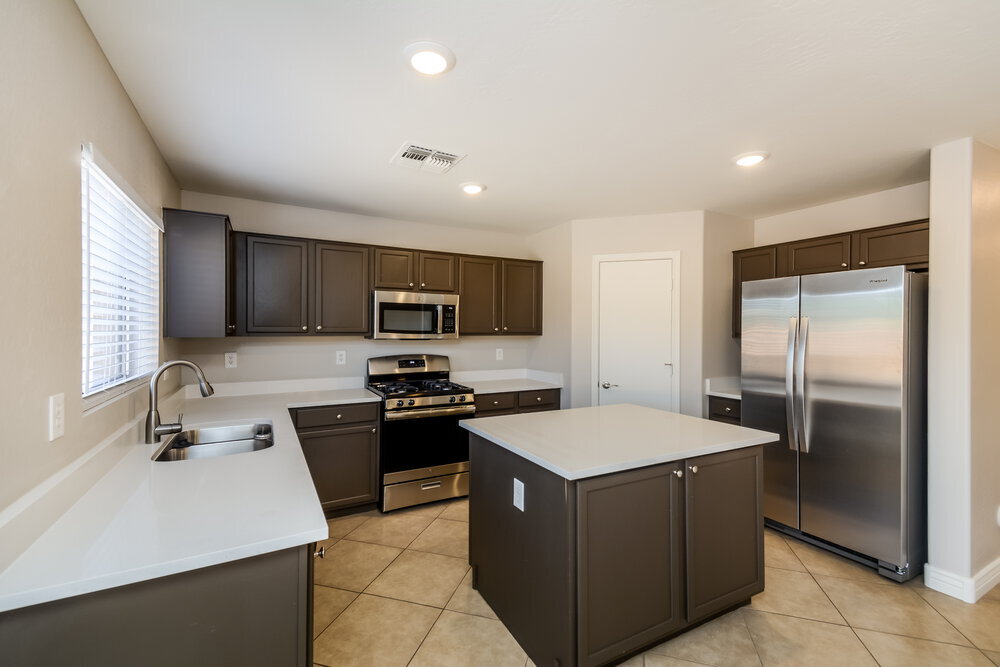Please note, our homes are available on a first-come, first-serve basis and are not reserved until the holding fee agreement is signed and the holding fee is paid by the primary applicant. This home features Progress Smart Home - Progress Residential's smart home app, which allows you to control the home securely from any of your devices. Learn more at Coming soon! This home is currently being enjoyed by another resident but will be available soon. Please respect their privacy and do not disturb. You can complete the application process and reserve this home for a $500 non-refundable holding fee until it's ready for move-in. This fee must be paid within 24 hours of being pre-qualified and will be applied to your first month’s rent if you enter into a lease for this home. You'll enjoy chatting with friends or family on the covered patio in the fenced backyard of this four-bedroom rental home in El Mirage. In the living room, a tiled floor and ceiling fan provide a comfortable indoor gathering space, and a sliding glass door provides access to the patio. The first level's open floor plan continues into the dining room, which boasts a modern chandelier and several sunny windows. In the kitchen, there's an island with quartz countertops, which makes meal prep easy. Upstairs, the serene master bedroom provides a walk-in closet and a private bathroom with a tiled bathtub and shower. Nearby Bill Gentry Park will add to your options for outdoor fun. Apply for this home today.