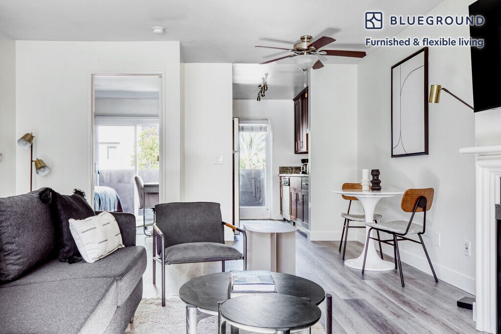Feel at home wherever you choose to live with Blueground. You’ll love this bright Playa Vista furnished one bedroom apartment with its modern decor, fully equipped kitchen, and exquisite living room. Ideally located, you’re close to all the best that Los Angeles has to offer! (ID #LAX567) The advertised rate of $2,660/month is the lowest available price, based on a 11 month(s) and 8 day(s) stay with a move-in date of April 12, 2026. Rates vary depending on the duration of stay, season, and other parameters. For exact pricing and additional pricing components, please visit our website and enter your desired move-in and move-out dates. The rate is applicable when billed upfront; it can be higher if billed in multiple payments. Brokers are welcome to reach out. Were you looking for an unfurnished lease? Try Blueground instead and upgrade from unfurnished to furnished living: - Furnished at rates comparable to unfurnished - No setup or furniture costs - save thousands - Move-in ready - save time, just bring your suitcase Designed with you in mind As with any Blueground apartment, you’ll find a thoughtfully designed space complete with beautiful furniture and a fully equipped kitchen in this one bedroom property. And, thanks to our superior quality mattresses, luxury linens, and towels, you can relax knowing you’ll always feel comfortably at home. When you’re ready for some fun, you can take in the Los Angeles vibes or bring the entertainment to you with the premium wireless speaker or smart TV. Sleeping arrangements King Bed, 70.8in/180cm Amenities Building amenities unique to this one bedroom apartment include an on-site: - Dryer in building - Washing machine in building - Parking - Pets allowed Arrival and ongoing support The entire apartment is yours to enjoy! Throughout your stay, you’ll have access to our Client Experience team through the Blueground App. You can schedule additional cleanings, submit maintenance requests, and view our neighborhood recommendations with just a few taps. We’ll share all details upon confirmation of your stay. Ideally Located This furnished property is located in Playa Vista, a newly built neighborhood on the westside of Los Angeles. The neighborhood offers office space to some of the biggest tech companies and attracts a mix of young professionals who seek to experience the Silicon Valley way of living. Nowadays, an increasing number of locals looking for an urban lifestyle, decide to relocate to Playa Vista and enjoy the shopping and dining. Runaway is the newest shopping area including a food market, movie theater and numerous retail outlets, an ideal destination for the weekends. With Playa Vista’s Daily Shuttle you can also get easily around the community. Other things to note Building amenities may have an extra cost. This Blueground apartment has flexible lease options, allowing you to book it for one month, a year, or more. Pets are welcome, though weight limits and breed restrictions apply and may incur fees. Parking is offered based on availability and is subject to a fee. Please keep in mind that this is a walk up building. We take great pride in ensuring every photo displayed is shot in our own units with our actual furnishings. That said, we regularly refresh our decor and furniture arrangement, which may differ from what’s pictured. Also note - There are stairs leading up to the entrance of this apartment, but no elevator [SI]