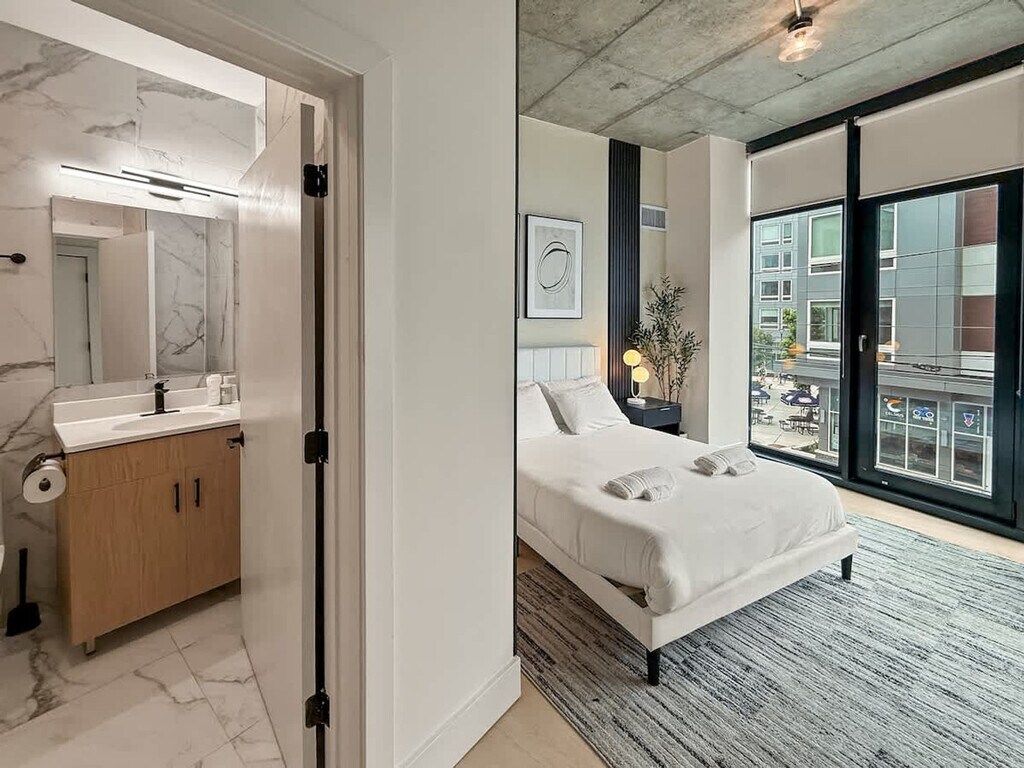 Experience the dynamic charm of Northern Liberties from this spacious and stylish 2-bedroom, 2-bath apartment. Featuring modern finishes, this home blends comfort with artistic flair. Located just a short walk from buzzing restaurants, cafés, and nightlife, and minutes from Center City, it’s the perfect base for exploring Philly. Ideal for families, friend groups, or business travelers, it sleeps up to 6. Step into your private retreat located in one of Philly’s most dynamic and sought-after neighborhoods. This stylish apartment offers the ideal combination of comfort and convenience for couples, solo travelers, small families, or business guests seeking a modern, central home base. Unwind in the open-concept sleeping area featuring a plush queen bed and high-quality linens. Though open to the living room, the space maintains a peaceful ambiance—perfect for recharging after a busy day of exploring the city or attending meetings. The thoughtfully designed living room offers a contemporary aesthetic with plenty of natural light. A comfortable sofa bed and a smart TV with streaming capabilities make it easy to relax, entertain, or simply enjoy a quiet night in. Prepare meals with ease in the modern kitchen, complete with stainless steel appliances, essential cookware, dishware, and a coffee maker to start your mornings right. Whether you’re making a quick breakfast or a full dinner, everything you need is ready for use. Enjoy the clean, spa-like bathroom featuring a shower and tub combo, soft towels, and complimentary toiletries. It’s designed to provide a refreshing start to your day or a relaxing end to your night. High-speed Wi-Fi, central heat and air conditioning, smooth self check-in, and a quiet and secure building enhance your stay. Walkable access to dining, nightlife, and more. Situated in the heart of Philadelphia, you’re just steps away from local restaurants, cafés, boutique shopping, and cultural attractions. Public transportation is close by, making it easy to reach Center City and other key destinations in minutes. We love furry companions, but approval is required before bringing a pet. Additional pet fees apply: short stays (1–4 nights) are $25 per night, mid-length stays (5–29 nights) are $200 flat, and long-term stays (30+ nights) are $300 flat. Thanks for helping us maintain a clean, safe, and enjoyable space for all guests! If anything comes up during your stay—questions, requests, or just local tips—we’re just a message away. We’re always happy to help and want to make sure your visit is smooth, comfortable, and memorable from start to finish. Registration Number: 984536 [SI]