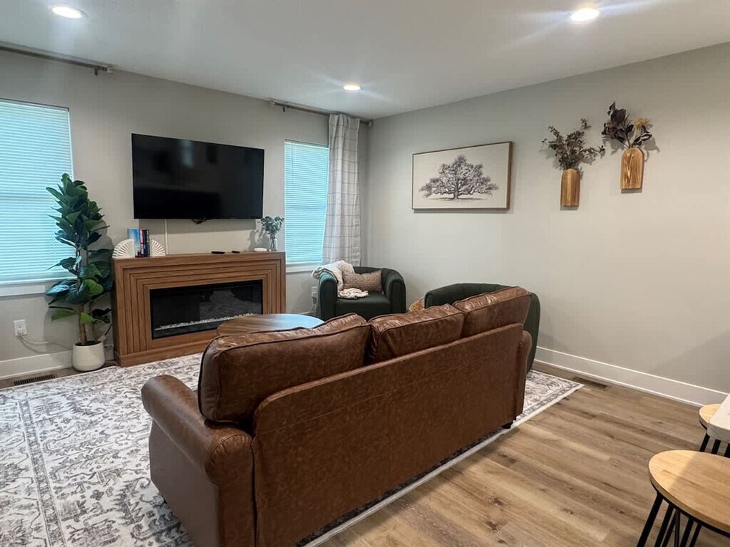 Feel at home in this brand-new 3-bedroom duplex, Kinsmoor Flats 101, located on the main level in Fort Wayne’s Oakdale neighborhood. Designed with comfort, convenience, and modern style in mind, this apartment sleeps 8 and features a fully equipped kitchen with stainless appliances, TVs in the living room, queen, and king bedrooms, fast Wi-Fi, central A/C and heat, and a fun giant Connect 4 wall game in the bunk room. Relax on the covered back deck with seating for 2 and a table. Well-behaved pets are allowed with prior approval and a fee of $50 per pet per stay. Nestled in the quiet, tree-lined Oakdale neighborhood, this apartment is just minutes from downtown Fort Wayne and steps to the Rivergreenway trail system with a direct path into downtown. Some sound may travel between units. Parties, events, and unauthorized gatherings are strictly prohibited. This is a 100% smoke-free property, and smoking (including vaping and cannabis) inside the home will result in a $250 cleaning fee. Only guests included in the reservation are permitted on the property unless approved in advance; additional unregistered guests may incur a $100 per person per night fee. Quiet hours are from 10:00 PM to 8:00 AM. Late check-outs beyond 30 minutes without prior approval will incur a $300 fee. Tampering with security devices is strictly prohibited and will result in cancellation without refund. Minor signs of wear and tear, such as scuffed walls or small paint chips, may be present due to normal use. [SI]