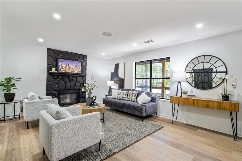 Stunning Two Bedroom Townhouse in Smyrna: Modern Comfort and Convenience. Boasting a sleek and contemporary design, this townhouse offers a perfect blend of style, comfort, and convenience. With its prime location and impressive features, this townhome is ideal for those seeking a sophisticated urban lifestyle. As you step inside, you'll be greeted by an inviting open-concept living room and stone fireplace that seamlessly connects to the dining area and kitchen. The well-appointed kitchen is a chef's dream, featuring modern appliances, ample storage space, and sleek quartz countertops. Whether you're a seasoned cook or simply enjoy preparing meals, this kitchen will inspire your culinary creativity. Upstairs, you will find two bedrooms with luxury vinyl plank flooring through out; a contemporary bathroom that features a custom double vanity with LED lighted mirrors and stand up shower with accent lighting. This townhouse also includes a private outdoor patio, providing a serene space for outdoor relaxation or hosting. Conveniently located in Smyrna, this townhouse is just a 10 minute drive from The Battery and offers easy access to Highway 75 & 285. MUST HAVE AT LEAST A 650 CREDIT SCORE AND MAKE AT LEAST $6000 IN VERIFIABLE MONTHLY INCOME TO QUALIFY.