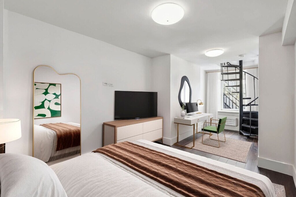 Feel at home in this fully furnished 1-bedroom, 1-bathroom duplex, perfect for short-term or long-term stays. The home features an expansive living and dining area with exposed brick, a renovated kitchen, and an elevated office or reading nook. A spiral staircase leads to a spacious bedroom with versatile layout options. Enjoy central air, southern light, and the convenience of an elevator and laundry in the building, all just moments from Central Park, museums, dining, and the 4, 5, and 6 trains. This thoughtfully designed duplex offers comfort and functionality with an expansive living and dining area, exposed brick wall, and renovated kitchen. The elevated nook provides a cozy space for reading or working, while the spiral staircase leads to a spacious bedroom with flexible layout options. Central air and southern exposures ensure comfort year-round. Laundry is available in the building. Located at 83rd and Lexington Ave, this upscale neighborhood offers a quintessential NYC experience. Just minutes from Central Park, world-class museums, and boutique shopping, you’ll be surrounded by top dining and vibrant city life. Tree-lined streets and elegant brownstones provide a perfect blend of charm and convenience. Nearby dining options include Masseria East, Felice 83, Mission Ceviche, and Hummus Kitchen. Whole Foods Market is within walking distance. Close to cultural landmarks such as The Met, Guggenheim, and The Museum of Modern Art. [SI]