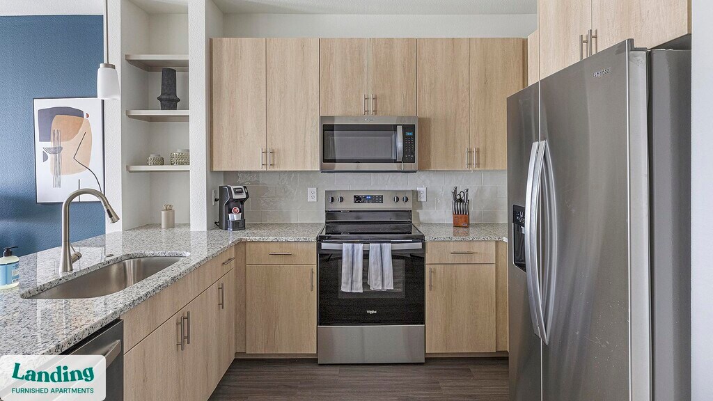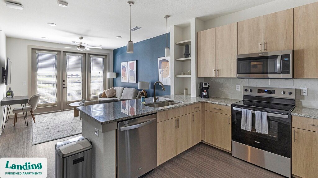 Landing is a top-rated, fully furnished apartment network with thousands of homes across 250+ U.S. cities. With premium amenities, a mobile app to manage your stay, and 24/7 support. Our apartments have everything you need for monthly and longer stays.: 6-Month Minimum base rent: starts at $1684/mo 12-Month Minimum base rent: starts at $1477/mo Landing's apartments at The Quinn are designed for comfortable, easy living, with the ability to stay as long as you like. All Landing apartments include: - Fast Wi-Fi - Stylish furnishings - Fully-stocked bathroom - Smart TVs - Comfortable bed - Professionally cleaned - Guest support Stay longer for cheaper! The longer you stay, the bigger your discount. Price advertised is for a 12-month stay, including all utilities and fees, and may vary based on availability. We manage multiple units at this property. While all feature a similar style and furnishings, the layout and specific design elements may vary slightly from the photos provided. Some of the nitty-gritty: a background check and proof of income are required; we're completely smoke-free; pet-friendly options are available; parking is subject to availability.