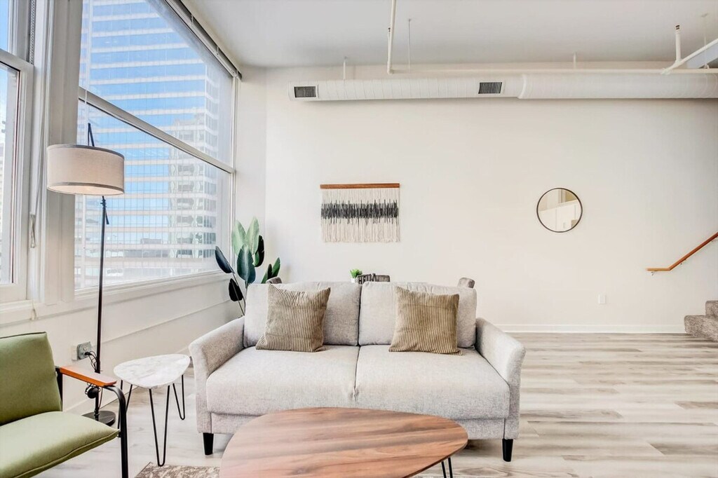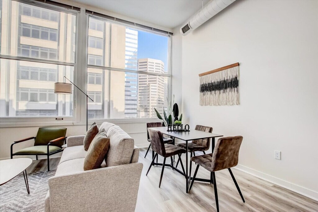 Feel at home in this cozy apartment located in a historic building with direct access to the Skybridge and stunning city views. This apartment is suitable for a family, group of friends, or business travelers and has all of the amenities necessary to enjoy your stay. Great amenities include a fully equipped kitchen, smart TV with streaming apps installed, complimentary coffee, and fitness center access. A washer and dryer are located in the laundry room on the 6th floor common area. Multiple parking lots offer daily parking at very reasonable prices within a 2 block radius. You couldn't be in a more convenient location, steps to anything! The apartment is one block from Indy’s Circle Center, Circle Centre Mall and the Statehouse, two blocks to the Indiana Convention Center and museums, a 5-minute walk to Gainbridge Fieldhouse, and a 10-minute walk to Victory or Lucas Oil Stadium. The unit is located in downtown Indianapolis, an 18-minute drive from IND-Indianapolis International Airport and a 10-minute walk to Indianapolis Station. It's next to TJ Maxx and the circle. Quiet hours are between 9 PM and 7 AM. There is no smoking, parties, or pets allowed. Check-in is at 4 PM and check-out is at 11 AM (with a $75/hr late fee). There is a $200 penalty for removing smoke detectors and a $500 penalty for lost key fobs. No outside guests are allowed without permission. One towel is provided per guest per stay. A valid photo ID is required to complete the booking. Guests must agree not to disturb neighbors at all times during the stay. No weapons or drugs are allowed; police will be called for violating this rule. [SI]