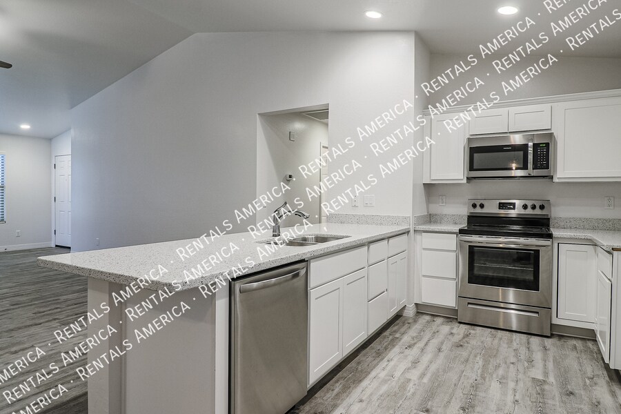 This beautiful 4 bedroom home is close to Luke Air Force Base and minutes from the 101 Freeway. Some features of this home are a split floor plan with a great room. Wood vinyl wood flooring throughout and ceiling fans. Eat in Kitchen opens to the great room and offers stainless steel appliances and lots of beautiful cabinet space. Master bath offers a walk in shower, dual vanities and a walk in closet. Landscape is easy to maintain. This home is a must see! One Time Admin Fee: $300, Pet Deposit: $300/pet (small pets only), Municipal Tax 3% & Service Fee of 2%. Resident Benefits Package: $39/month. Helping Heroes Discount Available! Cats Allowed Disposal Dogs Allowed Dryer Garage Pets Allowed Vaulted Ceilings Vinyl Washer