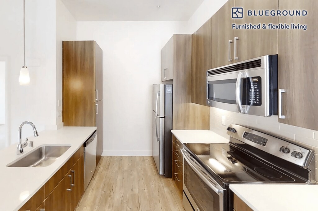 Staged photos of matching layout and similar décor Imagery shows same floorplan and building, and similar décor as we finish photographing this new unit. Be the first to rent! Feel at home wherever you choose to live with Blueground. You’ll love this sophisticated Sunnyvale furnished two bedroom apartment with its modern decor, fully equipped kitchen, and stylish living room. Ideally located, you’re close to all the best that Sunnyvale has to offer! (ID #SFO10700A) The advertised rate of $4,380/month is the lowest available price, based on a 12 month(s) and 30 day(s) stay with a move-in date of January 7, 2026. Rates vary depending on the duration of stay, season, and other parameters. For exact pricing and additional pricing components, please visit our website and enter your desired move-in and move-out dates. The rate is applicable when billed upfront; it can be higher if billed in multiple payments. Brokers are welcome to reach out. Were you looking for an unfurnished lease? Try Blueground instead and upgrade from unfurnished to furnished living: - Furnished at rates comparable to unfurnished - No setup or furniture costs - save thousands - Move-in ready - save time, just bring your suitcase Designed with you in mind As with any Blueground apartment, you’ll find a thoughtfully designed space complete with beautiful furniture and a fully equipped kitchen in this two bedroom property. And, thanks to our superior quality mattresses, luxury linens, and towels, you can relax knowing you’ll always feel comfortably at home. When you’re ready for some fun, you can take in the Sunnyvale vibes or bring the entertainment to you with the premium wireless speaker or smart TV. This apartment also offers in-apartment laundry. Amenities Building amenities unique to this two bedroom apartment include an on-site: - Dryer - Washing machine - Parking - Pets allowed Arrival and ongoing support The entire apartment is yours to enjoy! Throughout your stay, you’ll have access to our Client Experience team through the Blueground App. You can schedule additional cleanings, submit maintenance requests, and view our neighborhood recommendations with just a few taps. We’ll share all details upon confirmation of your stay. Ideally Located This furnished home is in the heart of the South Bay's Sunnyvale, with headquarters to many tech companies. Situated to the north of Santa Clara and to the south of Mountain View, Sunnyvale is a mid-sized city with nearly 150,000 residents. The median age is 35 years old, with a male to female ratio of 50/50. Sunnyvale is best known for its downtown on Murphy Avenue, which still retains its small-town feel. There are two golf courses at the Sunnyvale Golf Course, including an 18-hole championship course. Other things to note Photos show same floorplan and building, and similar decor as we finish photographing this new apartment. This Blueground apartment has flexible lease options, allowing you to book it for one month, a year, or more. Pets are welcome, though weight limits and breed restrictions apply and may incur fees. Parking is offered based on availability and is subject to a fee. Please keep in mind that this is a walk up building. We take great pride in ensuring every photo displayed is shot in our own units with our actual furnishings. That said, we regularly refresh our decor and furniture arrangement, which may differ from what’s pictured. [SI]