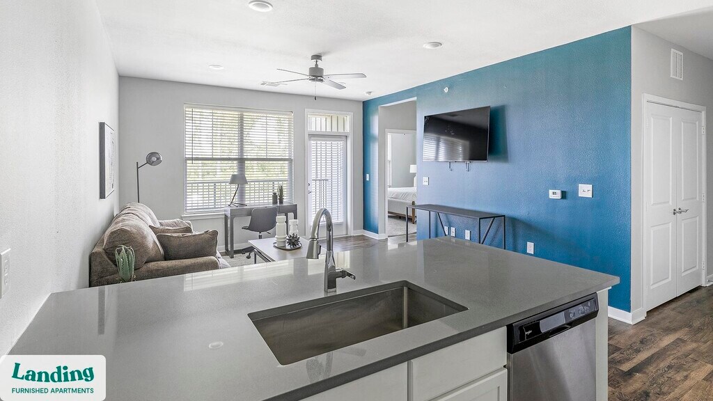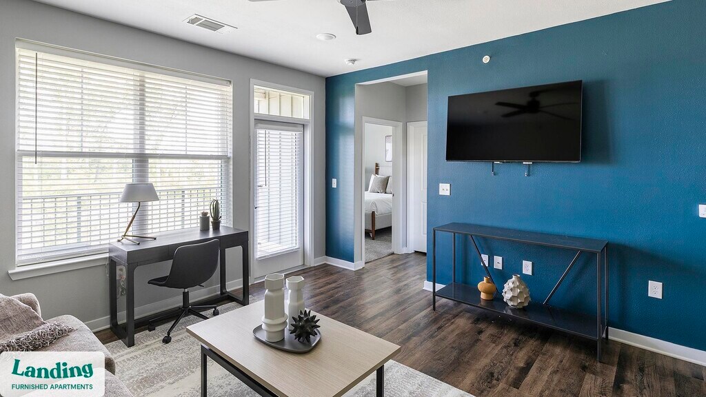Landing is a top-rated, fully furnished apartment network with thousands of homes across 250+ U.S. cities. With premium amenities, a mobile app to manage your stay, and 24/7 support. Our apartments have everything you need for monthly and longer stays. 6-Month+ Stay base rent: starts at $1707/mo 12-Month+ Stay base rent: starts at $1485/mo Landing's apartments at FarmHaus are designed for comfortable, easy living, with the ability to stay as long as you like. All Landing apartments include: - Fast Wi-Fi - Stylish furnishings - Fully-stocked bathroom - Smart TVs - Comfortable bed - Professionally cleaned - Guest support Stay longer for cheaper! The longer you stay, the bigger your discount. Price advertised is for a 12-month stay, including all utilities and fees, and may vary based on availability. We manage multiple units at this property. While all feature a similar style and furnishings, the layout and specific design elements may vary slightly from the photos provided. Some of the nitty-gritty: a background check and proof of income are required; we're completely smoke-free; pet-friendly options are available; parking is subject to availability.