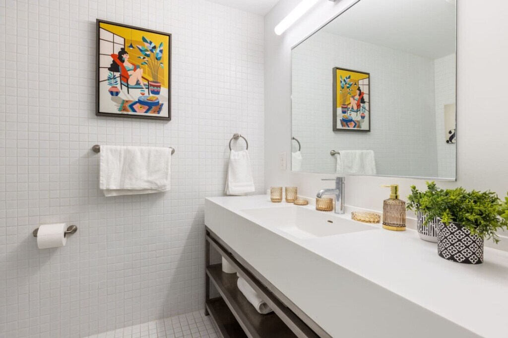 Discover comfort and convenience in this stylish, modern studio apartment on the first floor with convenient access. Feel at home in this cozy city retreat. This apartment features a fully equipped kitchen with new appliances, an in-unit washer/dryer, a rooftop patio, a Smart TV, and Wi-Fi. The fully stocked kitchen includes a coffee machine, olive oil, pots, pans, and more. Bathroom essentials such as shampoo, body wash, a hairdryer, and conditioner are provided. Enjoy the use of brand new appliances, an iron and ironing board, air conditioning, bed linens, extra pillows, blankets, bath towels, coffee and tea, a coffee maker, a kettle, sugar, laundry detergent, cleaning supplies, smoke alarms, and carbon monoxide detectors. This handicap-accessible unit has a step-free shower and grab bars. Free private parking is available. Centrally located near University Circle, Cleveland Clinic, Cleveland Museum of Natural History, the Cleveland Museum of Art, and Little Italy's charming shops and restaurants, this apartment offers easy access to Downtown Cleveland, Rocket Mortgage Field House, Progressive Field, and Cleveland Browns Stadium. It is just a short bike, drive, or public transit ride away. The apartment is 8 minutes from University Circle, 8 minutes from Cleveland Clinic, 10 minutes from Little Italy, 12 minutes from Rocket Mortgage FieldHouse, and 12 minutes from Progressive Field. Smoking indoors will result in a $500 fine. Evidence of unregistered pets will result in a $500 fine. There is a $1000 surcharge charged to groups that are deceitful about the use of the unit. Guests partying will be asked to vacate the property immediately without refund. A surcharge of $350 per undeclared guest per night will be applied for each unapproved guest. Any cameras removed or disabled will be considered a violation of the booking and a fine of $500 is applicable. A noise-aware sensor is installed in the unit to monitor decibel levels. Check-out times are firm unless scheduled and confirmed 24 hours in advance and only if it does not disturb upcoming guest reservations. A $50/hour penalty is applied if guests fail to check out by 11am. Lost keys and fobs are subject to a replacement fee of $100 for keys and $150 for fobs. Includes a dedicated workspace. [SI]