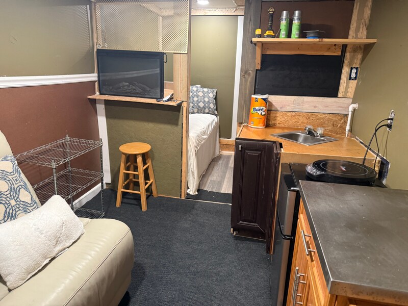 Property Id: 2178615 This is a unique sleeping unit/space made from pallets. This garage rental features toilet/shower/sink/twin bed/kitchenette space/Smart TV/Recliner/Window Unit Air Conditioner/Heater. Private entry, private horse property/farm in rural area. Tenant must provide their own internet/trash service and no laundry on premises! Swimming pool, play area, sand volleyball court, picnic area (table with grill). Freshly laid eggs available. Calm, relaxing environment, no drama over here! Happy people!!! Landlord pays electric, water and sewer!