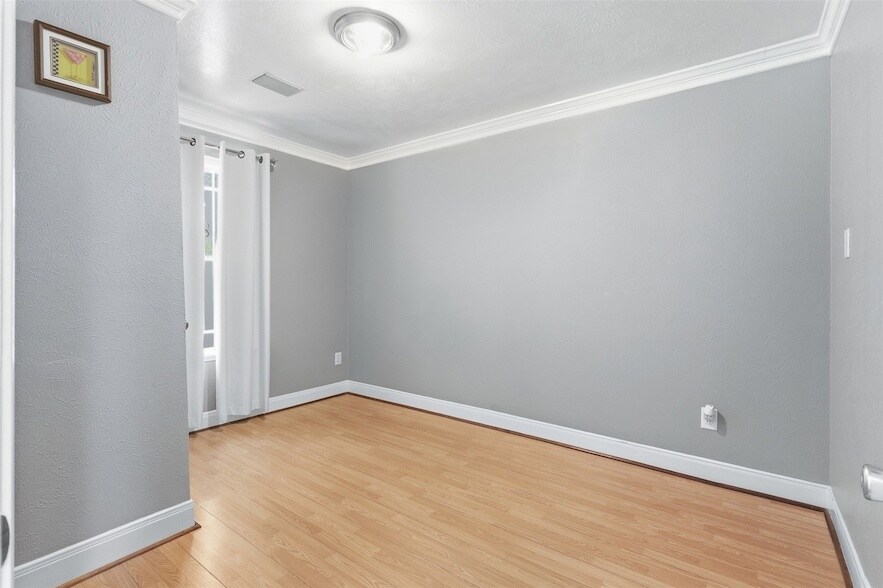 Welcome to this beautifully designed single-story gem in Houston's vibrant West Orem Place neighborhood! This fantastic home featuring an incredible flex room that easily adapts to your lifestyle perfect as a dedicated home office, private gym or a fourth bedroom. Step inside through the charming glass door to discover a bright, open-concept floor plan highlighted by stunning terracotta-style tile floors and soaring vaulted ceilings. The modern chef's kitchen boasts pristine granite countertops, sleek grey cabinetry, and premium stainless steel appliances, including a five-burner gas range. Entertain with ease in the spacious living area, complete with a cozy fireplace and custom built-in shelving. Enjoy plush carpeting in all bedrooms for ultimate comfort. Retreat to your primary suite, or step outside to the covered patio and fully fenced backyard oasis. Located near Beltway 8 and Hwy 288, enjoy quick commutes to the Texas Medical Center and downtown. Your truly perfect home awaits!