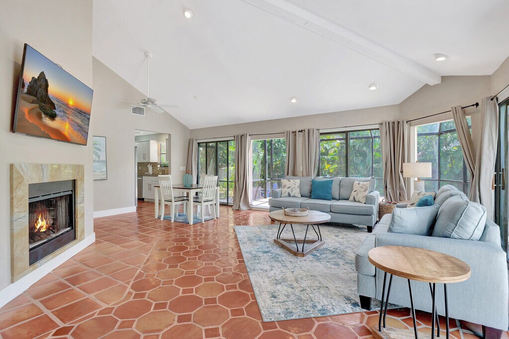 This is unit 1 of a 2-unit complex located within a few miles of the Naples city limits. This two-bedroom and two-bathroom retreat features an abundance of natural light with high ceilings and multiple glass sliding doors to complement the interior. Welcome to your cozy vacation rental in Naples, Florida! This charming home boasts two bedrooms and two bathrooms, perfect for a family or group of friends. The main living area is open and spacious, with comfortable seating for relaxation. The fully equipped kitchen, featuring stainless appliances and granite countertops, has everything you need to prepare delicious meals, and the dining area is perfect for enjoying them together with views of the outdoor subtropical landscape. The bedrooms are tastefully decorated, with the main bedroom offering two queen-size beds and the second bedroom a king-size bed. Additionally, there is a sleeper sofa in the family room. The home has two full-sized bathrooms ensuring privacy and convenience, with the first bathroom having a glass-enclosed shower and the second a tub and shower combo. Outside, a lovely patio area allows you to soak up the Florida sunshine or enjoy an al fresco meal, with a conversation area featuring an outdoor gas-powered firepit. The property is surrounded by lush tropical vegetation, providing a tranquil oasis to unwind in. The home includes two beach chairs, a beach cooler, a pack n' play, and two cruiser bikes to use around the neighborhood. Each of the TVs is smart and has Xfinity Cable, and there is 1 Gig speed Internet/Wi-Fi at the home. Only one or two non-shedding, hypoallergenic dogs are permitted in this pet-friendly home. Cats and all other animals are strictly prohibited, including birds, reptiles, rodents, and exotic pets. Located in Naples, Florida, this vacation rental is in a prime location for exploring all that the area has to offer. You'll be just a short drive away from the white sandy beaches, world-class golf courses, and vibrant dining and shopping options that Naples is famous for. It is best to have a vehicle with you as Naples is a large metro area. This property is about a 30-minute drive to the Fort Myers International Airport. This is a self-check-in property. You will receive the codes to check in once full payment is received and it is two weeks prior to arrival. Codes are changed automatically between each reservation. Quiet hours are between 22:00 and 8:00. Registration Number: Florida state permit number: #DWE2102775 [SI]