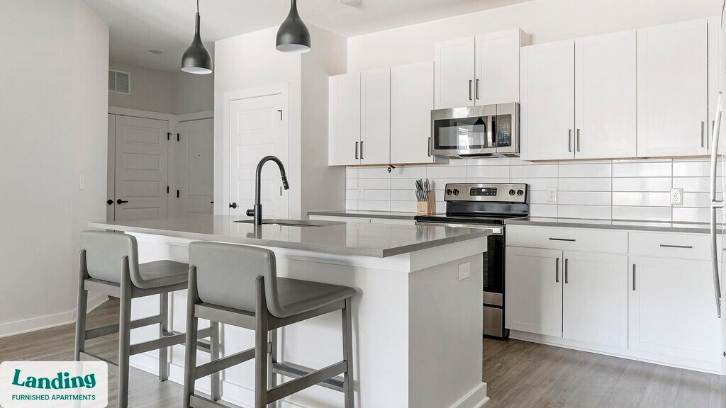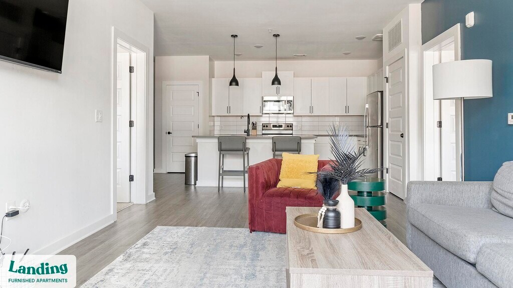 Landing offers flexible lease terms from weeks to months. Please always visit our website or contact us for the latest pricing & availability. Stay longer, save more: 6-Month Minimum base rent: starts at $2245/mo 12-Month Minimum base rent: starts at $2261/mo Landing offers flexible leases across a network of over 35,000 fully-furnished apartments throughout 375+ cities so you can rent on your terms, practically anywhere, and avoid the hassle of paying deposits or application fees. Visit to learn about all the benefits of a Landing membership, see our competitive up-to-date pricing, explore available apartments, take virtual tours, and make reservations online without jumping through traditional rental hoops. Landing's apartments at Cadence Sugar Hill are designed for comfortable, easy living, with the ability to stay as long as you like. Experience living with Landing Every apartment is outfitted with all the modern essentials including: custom-designed furnishings, a fully-equipped kitchen with deluxe stainless steel appliances, a gourmet coffee maker, premium linens, Smart TVs, and incredibly fast, reliable internet for working from home. When you live with Landing, you'll enjoy a hassle-free experience with the added benefit of 24/7 access to our dedicated member experience team. Some of the nitty-gritty: a background check and proof of income are required; we're completely smoke-free; bundled utility packages and pricing vary based on length of stay; pet-friendly options available; listed price reflects a 12-month minimum stay.