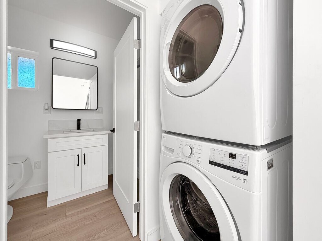 Welcome to your beautifully upgraded 1-bedroom, 1-bathroom ADU in the heart of Lancaster! This centrally located residence blends modern style with thoughtful functionality, offering privacy, convenience, and comfort. Enjoy the luxury of having your own unique address—no apartment number required—while benefiting from a fully updated living space. The open-concept kitchen features crisp white cabinetry, sleek quartz-style counters, stainless steel appliances, and modern black fixtures. The bathroom has been tastefully remodeled with elegant finishes, including a bold framed glass tub/shower combo and modern vanity. Two energy-efficient wall-mounted A/C units provide customizable climate control year-round, while new laminate wood floors and recessed lighting throughout elevate the home’s bright, airy ambiance. Additional highlights include an in-unit LG stackable washer and dryer, EV charging station, private entrance, and an ideal location with easy access to major roads, shopping, and local amenities. Whether you're a professional, couple, or minimalist at heart—this ADU offers upscale living in a charming, standalone space. Don’t miss the opportunity to make it yours!