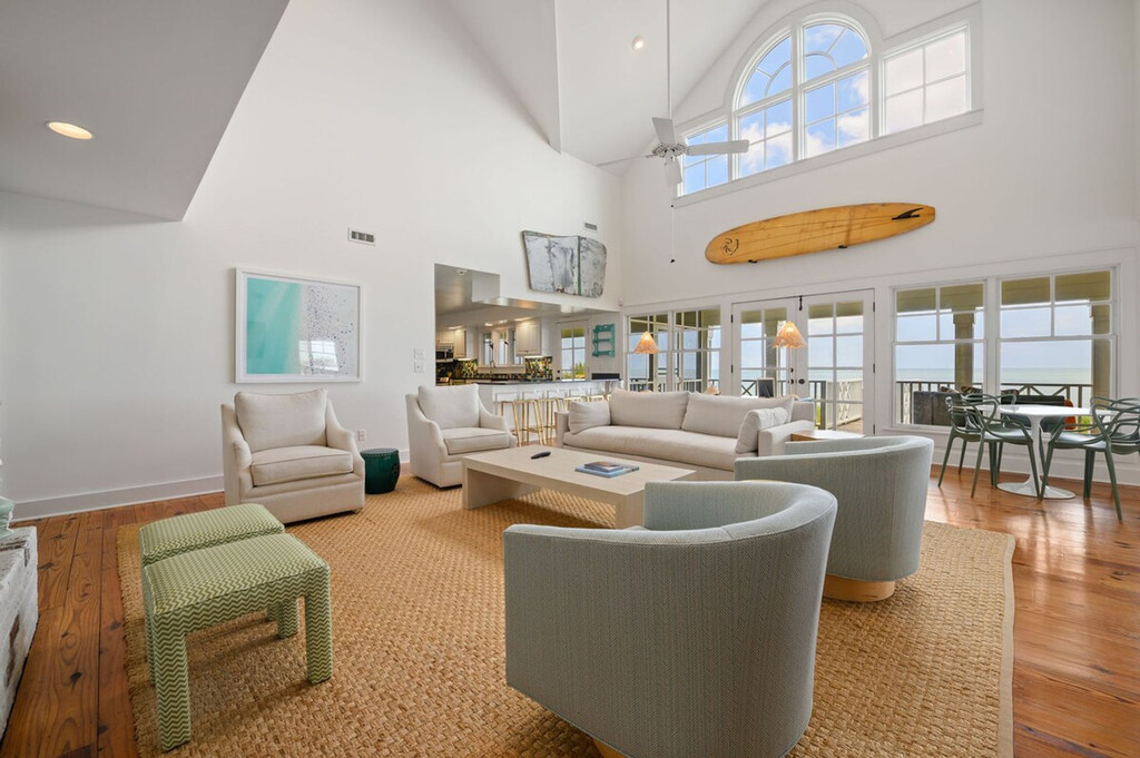 Cherished memories await at this stunning oceanfront property located at 1247 DeBordieu Blvd. Feel at home in this spacious residence featuring four large bedrooms, each with an ensuite bathroom, TV, and large closet. The first floor hosts two master king-size bedrooms, while the second floor offers two guest bedrooms, each with two queen beds and a daybed. The heart of the home is a grand open foyer leading to a living area with vaulted ceilings and large windows, offering abundant light and unobstructed ocean views. Enjoy the expansive covered porch with cozy seating, a hammock, and a screened-in porch for oceanfront dining. This property boasts a fully equipped kitchen with two dishwashers, a refrigerator, stove, oven, microwave, and Cuisinart coffee maker, making meal preparation a breeze. The open floor plan includes multiple dining areas, a wet bar with a wine fridge, and a game table for entertaining. The ground floor garage offers a TV, shuffleboard, ping pong table, and corn hole, providing a fantastic space for fun out of the sun. Temporary club membership is available for $200 a day, granting access to community pools, dining, tennis, and golf. The maximum number of cars allowed is four, with a $20 fee per vehicle to enter the community. Beach gear rentals are available with a $50 daily credit for stays of 3 to 21 nights, offering bicycles, beach chairs, umbrellas, and more. Located in the private oceanfront gated community of DeBordieu Colony near Pawleys Island, South Carolina, this property offers miles of beach, tidal creeks, and an on-site nature preserve with walking trails and bike paths. Enjoy the finest Lowcountry Lifestyle with access to community pools, dining, tennis, and a champion Pete Dye golf course. The property is conveniently situated just an hour from Charleston and 45 minutes from Myrtle Beach. No pets are allowed, although exceptions can be made for long-term renters. Smoking is prohibited on the premises, and there is a strict no-fire policy for the fireplace. Guests under 25 must be accompanied by a responsible parent or guardian. Check-in day during the summer is Friday. The property features contactless check-ins and check-outs, and enhanced cleaning and sanitization protocols are in place for your safety.