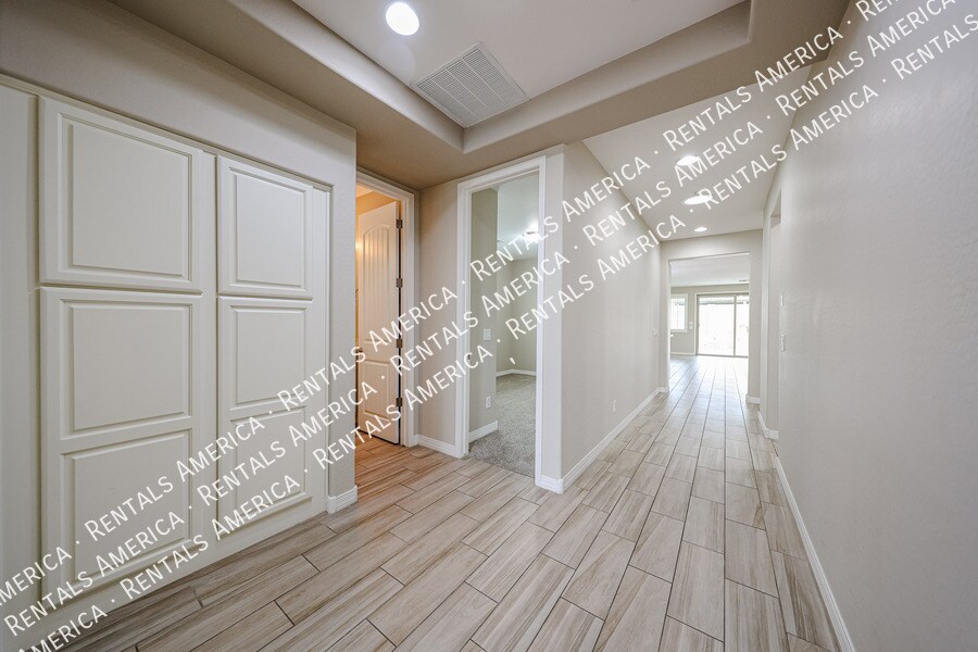A gem of a home! Available now is a single story 3 bedroom home on a corner lot in Vistancia Community. Neutral colors, plantation shutters, and ceiling fans throughout. Wood-look tile floors, solar ceiling light provide nice natural light. L-shaped kitchen, white cabinetry includes drawer pull outs, SS appliances, granite counters, and sizable island breakfast bar. Split layout. The primary room offers beautiful, dual sink ensuite, expansive wardrobe closet. Nicely landscaped and lower maintenance yards. Covered back patio, offers nice mountain views! Newer AC and water softener system and epoxy flooring in garage. One dog only permitted. Vistancia community amenities included. Tour and apply now! One Time Admin Fee: $300, Pet Deposit: $300/pet (if applicable), Service Fee: 2%. $39/month Resident Benefits Package, Helping Heroes Discount Available! Cats Allowed Dogs Allowed Dryer Washer