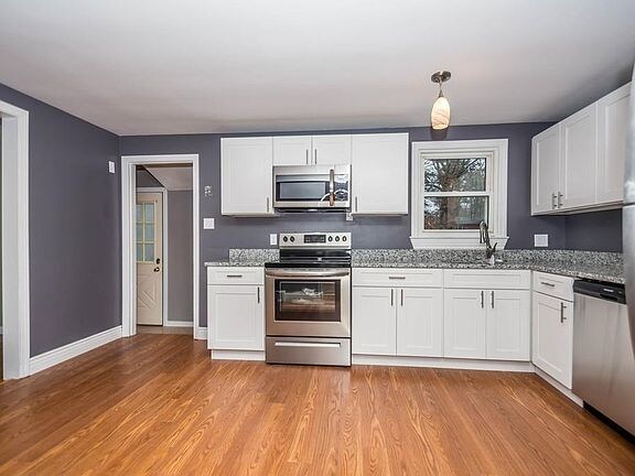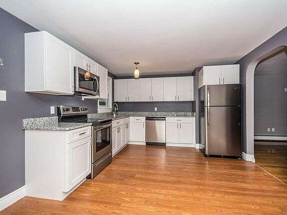 Property Id: 2183613 This beautiful move-in ready ranch has all of the updates you're looking for and more! With three bedrooms and 2 ½ baths, there is room for everyone. The spacious living room boasts a cozy brick fireplace and a huge bay window. Hardwood floors throughout lead to the updated kitchen featuring stainless steel appliances, granite countertops, tons of cabinet space, and a separate sun drenched formal dining room. Main level has three spacious bedrooms with ample closet space, a full bath with spa style shower, backyard access, and half bath. The newly finished basement offers extra living space with a full bath including double vanity. Relax or entertain on the deck and don't miss the expansive tree-lined backyard. With more than enough off-street parking, solar panels (2019) Tesla Powerwall (2020), new furnace (2020), and new oil tank (2020), there is nothing left to do but move in!