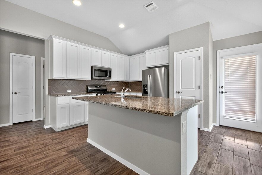 Look & Lease Special - $500 Off First Month - Deposit Free Option - Move in by November 14th. Cute 1 story home in the popular Trace in San Marcos. Beautiful master planned community right off I35, open floor plan, high ceiling, upgraded island kitchen with 42"cabinets and stainless appliances, master bathroom has standup shower and double vanity, private back yard, close to highways, Premium Outlet Mall, Amazon Warehouse, Texas State University and more! Elementary school in the community, modern community amenity!