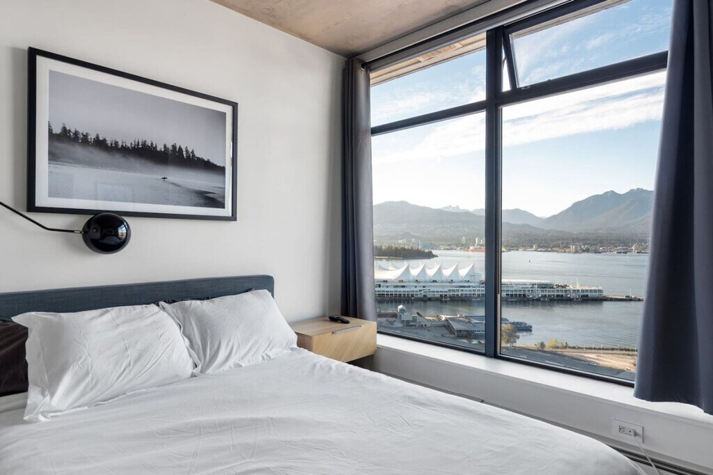 Experience elevated living in this stunning 2-bedroom apartment perched high on the 32nd floor, boasting breathtaking views of the North Shore. This modern oasis combines sleek furnishings with a rich, dark ambiance, creating a chic and sophisticated retreat in the heart of the city. The spacious layout includes two full bathrooms, perfect for privacy and convenience, and a stylish living area that opens onto a private patio ideal for soaking in the panoramic scenery. Step into a beautifully designed space that seamlessly blends style and comfort. The open-concept kitchen, complete with an island, is perfect for preparing meals and socializing, flowing effortlessly into the cozy living area. Relax on the comfortable seating while enjoying stunning views or gather around the dining table, which seats four, for a memorable meal. The building offers fantastic amenities, including a refreshing pool for those warm days, and you'll have the convenience of a free parking stall during your stay. Located in the vibrant heart of Vancouver, this property places you in one of the city's most dynamic and sought-after neighborhoods. Just steps away from trendy Gastown, you'll be surrounded by a mix of historic charm and modern flair, featuring cobblestone streets, boutique shops, eclectic eateries, and stylish coffee spots. The area is a hub for art, culture, and entertainment, with an array of galleries, music venues, and landmarks like the iconic Steam Clock. You’re just a short stroll from downtown, where you can explore high-end shopping, world-class dining, and bustling nightlife. For nature lovers, the waterfront is nearby, offering scenic walks along the seawall and stunning views of the North Shore mountains. Excellent transit options make it easy to explore the city, with quick access to major attractions and destinations. With grocery stores, pharmacies, and daily conveniences within walking distance, you’ll have everything you need right at your doorstep. Whether you're here to work, explore, or relax, this neighborhood offers a perfect blend of urban excitement and local charm. This property boasts a fantastic location with a Walk Score of 98, making it a "Walker's Paradise." Most daily errands can be accomplished on foot, with an abundance of restaurants, cafes, and shops just steps away. Public transit is also incredibly convenient, with multiple bus stops nearby and the Waterfront Station only a short walk away, connecting you to SkyTrain, SeaBus, and West Coast Express routes. For those driving, the unit includes a free parking stall, and main roads provide easy access to major highways and bridges, making trips around Vancouver and beyond a breeze. Biking is also a great option, with designated bike lanes throughout the area and a Bike Score of 95. Whether you prefer to walk, bike, drive, or use public transit, getting around couldn't be easier in this prime location. Guests will have access to the entire home, private. Important House Rules: No parties, no large gatherings, no smoking in property or on patio. Any rules broken will result in a minimum $1000 fine. Registration Number: H648866827 [SI]