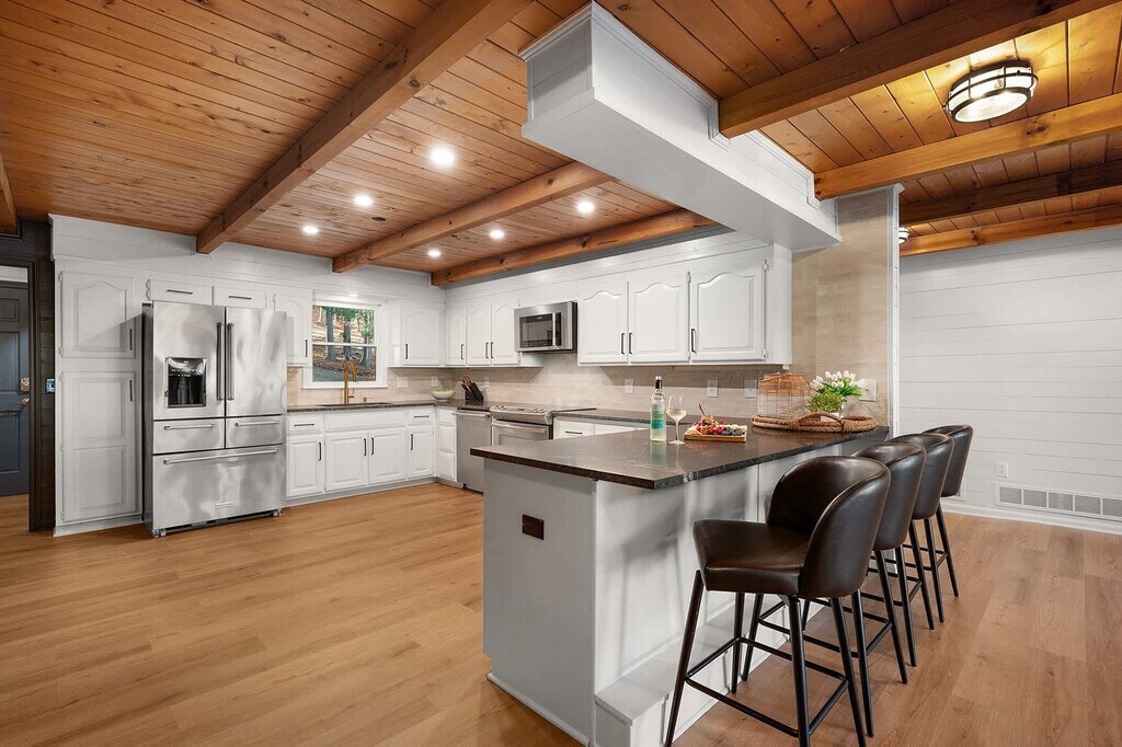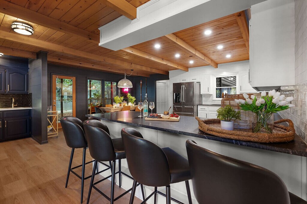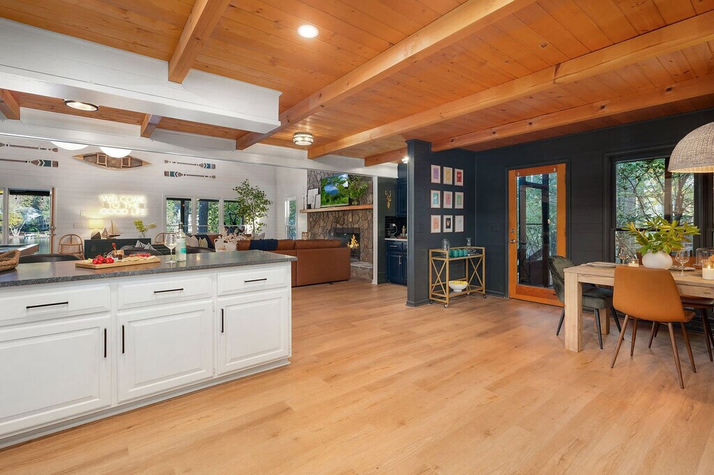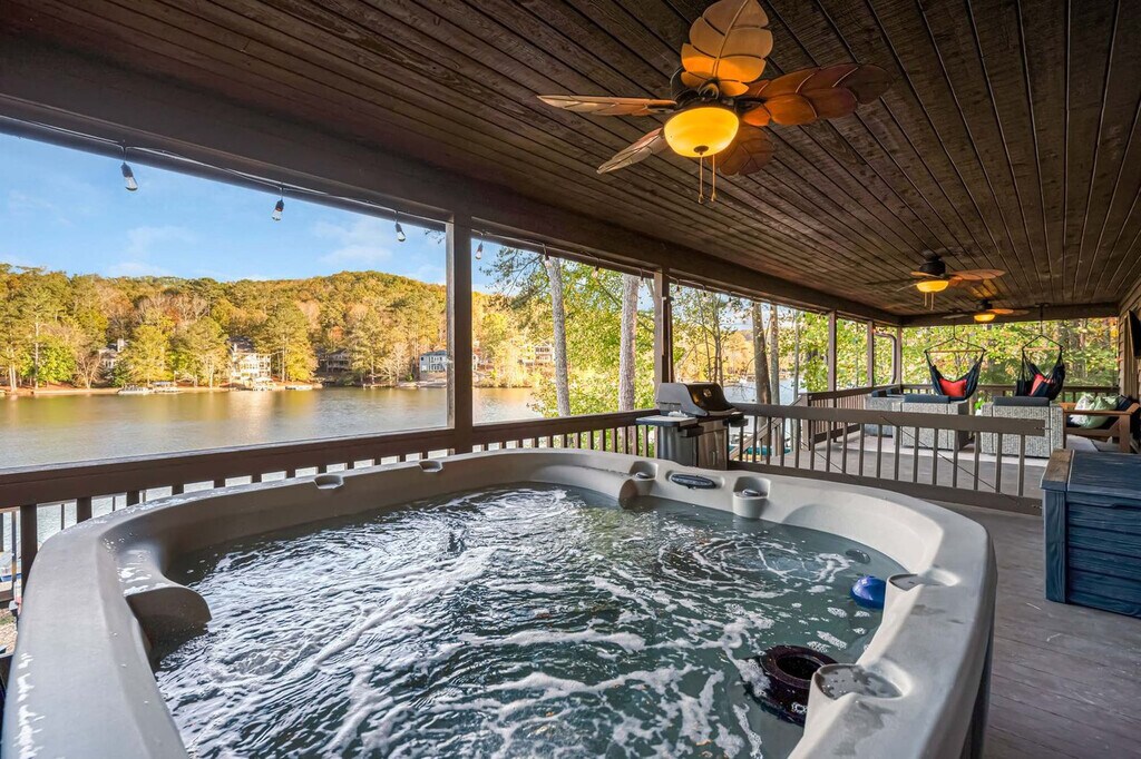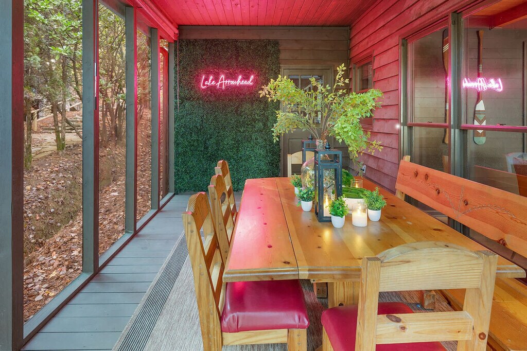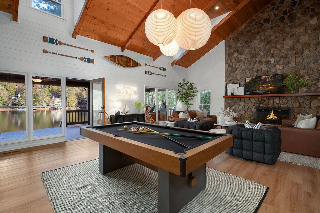 This luxurious 4-bedroom, 3-bathroom lakefront home on Lake Arrowhead offers everything you need for an unforgettable getaway. With direct lake access and an expansive layout, this home comfortably hosts up to 16 guests, making it perfect for family gatherings and group adventures. Enjoy breathtaking lake views and nearby attractions for the ultimate vacation experience. Welcome to your ultimate lakefront getaway! This home features cozy gathering spaces, a fully stocked chef’s kitchen with high-end stainless appliances, and a living room/game room with a 65" smart TV, pool table, and arcade games. Each bedroom is equipped with a smart TV, and the home includes a screened-in porch for outdoor dining and relaxation. Parking is available in the garage for up to 4 cars, and guests can enjoy access to two community pools. Please note that guests cannot bring their own boats or watercraft into the community. Nestled within the prestigious Lake Arrowhead Yacht & Country Club, this short-term rental offers guests access to top-tier amenities and the serene charm of a private, gated community. Enjoy an 18-hole championship golf course, tennis and pickleball courts, basketball courts, and 18 miles of scenic hiking trails. The clubhouse restaurant provides a convenient dining option with takeout service available. Check-in is at 4 pm and check-out is at 10 am. The minimum age for check-in is 21 years old. No pets are allowed, and absolutely no parties are permitted, as this is grounds for termination. Quiet hours are between 10:00 pm and 7:00 am. The indoor fireplace cannot be used by guests. [SI]