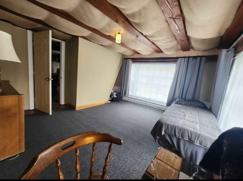 Property Id: 2190467 Located in Spencer Ma. This unique, historic, owner occupied home is set on 6.75 acres of land w/ woods & stream in back. 1st floor bedroom is ~13' x 13.5' w/ large southwest facing windows. Sun drenched in the afternoon, w/ views of the sunset over the trees. Renovated spring '25 - new carpet & felt underlayment keeps floor warm in winter. - floating floor w/ sound dampening underlayment added to bedroom above, mitigates sound penetration through the ceiling - Styrofoam insulation in ceiling, for added sound dampening, is covered w/ flame retardant burlap; giving the room a rustic canopy bed effect. (Will upgrade upon request) - Windows cleaned, repaired, & caulked to eliminate drafts. - extra insulation added to exterior walls - sound dampening insulation is being installed in the bedroom wall adjacent to the kitchen. -- No closet but there is a nook that can function as one & space for a garment rack or wardrobe. - Removable Velcro'd vinyl window coverings for winter are provided.
