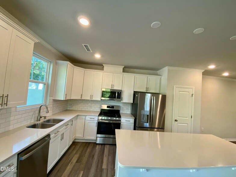 Available immediately- END UNIT-Townhouse 3 BED / 2.5 BATH + 1 Car Garage. Large open floor plan. Kitchen with quartz counters, gas range, Luxury vinyl plank flooring on the main level. Good sized master bedroom + large walk-in closet. Master bathroom includes dual vanity, walk-in shower, and separate water closet with window! Refrigerator and Washer/Dryer is included. ! Great location near White Oak Crossing shopping center. Super easy freeway access I40