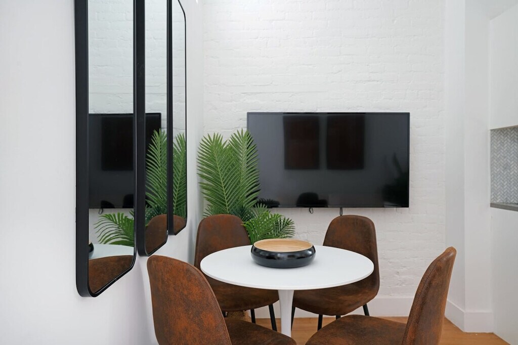This elegantly furnished 2-bedroom apartment offers a blend of comfort and style, featuring a queen-size bed in the bedrooms and a full-size sofa in the living room for ultimate relaxation. An air mattress is also on hand for extra sleeping options. The building is a walk-up and there is no elevator. The expansive kitchen comes fully stocked with all essential appliances and utensils, making it easy to prepare delectable meals during your stay. Hardwood flooring graces the entire apartment, lending an air of sophistication and warmth. For your entertainment and connectivity needs, a 50” HD TV and Wi-Fi are readily available. Complete with provided linens, such as sheets and towels, this apartment has everything you need for a delightful stay in the Upper East Side. The Upper East Side is one of the most desirable neighborhoods in New York City, known for its upscale residential buildings, high-end shopping, and iconic cultural institutions. The area is home to a number of renowned museums such as the Metropolitan Museum of Art, the Solomon R. Guggenheim Museum, and the Neue Galerie New York. The Upper East Side is also a shopper's paradise, with designer boutiques and luxury brands lining Madison Avenue and Fifth Avenue. Foodies will also enjoy the diverse culinary offerings in the area, with a variety of restaurants and cafes serving up everything from classic New York bagels to Michelin-starred cuisine. The Upper East Side also boasts numerous parks and green spaces, including Central Park, which is just a short walk away from the apartment. Overall, the Upper East Side is a vibrant and dynamic neighborhood, offering residents and visitors alike a unique blend of cultural, artistic, and culinary experiences. New York City's heating season is until the end of May. Beginning around mid-April, window air conditioning will be installed in the apartment. You can request an earlier installation. [SI]