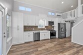 Charming tiny-home living with a lake view! This 2-bedroom, 1-bath loft-style home in the gated Waters Edge Community offers an efficient 872 sq. ft. layout with high ceilings, vinyl flooring, and an open kitchen/living area. Built in 2019, it features a 2 main-floor bedroom plus an upstairs loft for extra space. Enjoy peaceful surroundings, controlled subdivision access, and Lake Conroe views and water access. Perfect for downsizing, weekend living, or investment. Conveniently located near I-45 and FM 1097 easy, low-maintenance living in Willis!