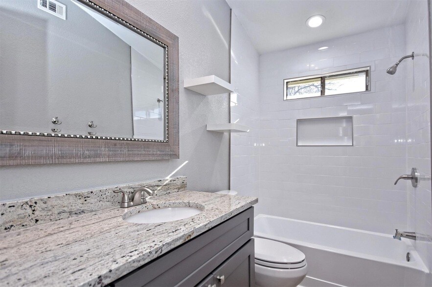 Contemporary Remodel: 4-Bedroom, 1-Story Home in NW Austin's Popular Rattan Creek! Featuring vinyl plank flooring throughout no carpet. The remodeled kitchen boasts a stainless-steel gas range, microwave, dishwasher and side-by-side fridge, granite counters, a subway tile backsplash, and updated cabinets. The bathrooms have updated vanities, granite countertops, and contemporary tiled showers/baths. Well-maintained property with recently painted interior in August 2024, energy efficient HVAC, roof shingles and exterior paint in past 3 years and no popcorn ceilings! The fantastic location is just 1 block from hike-&-bike trail and gorgeous neighborhood park with Jr. Olympic sized pool, playground and sport courts/fields! Located in the award-winning Round Rock ISD with Pond Springs Elementary school a short walk away. Less than 1 mile from the new Apple campus and within 2 miles of two HEB groceries, Starbucks, Hwy 183 and Parmer Ln and dozens of restaurants and shops. Only 10 minutes from Austin s 2nd downtown, the Domain!