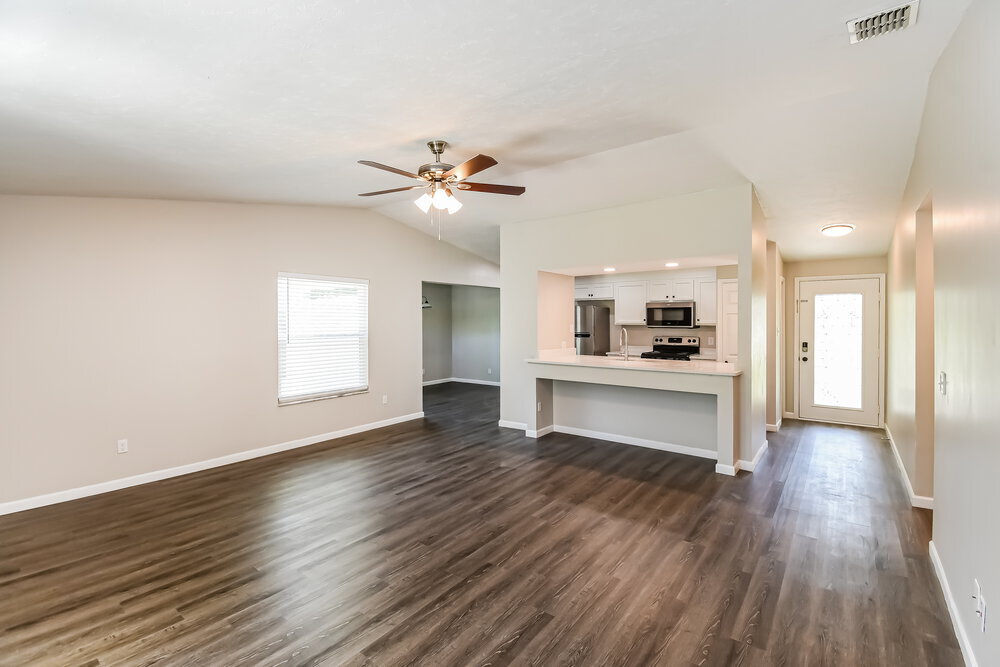 Please note, our homes are available on a first-come, first-serve basis and are not reserved until the holding fee agreement is signed and the holding fee is paid by the primary applicant. This home features Progress Smart Home - Progress Residential's smart home app, which allows you to control the home securely from any of your devices. Learn more at This home is priced to rent and won't be around for long. Apply now, while we make this home ready for you, or call to arrange a meeting with your local Progress Residential leasing specialist today. This three-bedroom, two-bathroom, recently renovated rental home in Orange Park, Florida has meticulous landscaping, including a large shade tree in the front yard. Inside this one-story home, you will be greeted by a vast open floor-plan living and dining area with a vaulted ceiling, gorgeous vinyl plank flooring, and light-colored walls. The nearby kitchen has a breakfast bar facing this space, sparkling new stainless steel appliances, and pristine white cabinets for plenty of storage. The main bedroom is in the back of the house and sports two windows allowing for lots of natural light and a generous walk-in closet to organize your clothing. This rental home also features a massive fenced-in backyard with a patio perfect for hosting barbeques. Schedule your tour today!