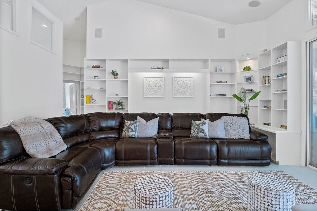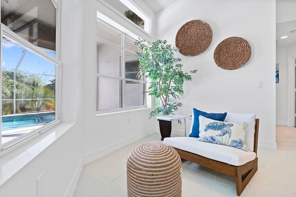 Experience luxury in this stunning 4-bedroom, 3-bathroom canal-front home featuring a saltwater heated pool and Tiki bar, perfect for entertaining. The property includes a fully stocked chef's kitchen with stainless steel appliances and quartz countertops, a relaxing master suite with a private bath and Smart TV, and an oversized boat dock with breathtaking views. A two-car garage provides ample storage, and pets are welcome for an additional fee. This home offers a unique blend of relaxation and adventure, making it an ideal getaway. The master bedroom features a king-size bed and Smart TV, while guest bedrooms are equipped with beds and smart TVs. The split bedroom floor plan ensures added privacy. The interior boasts a large kitchen with wood soft-close cabinets, a center island for additional workspace, and a remodeled butler pantry/laundry room with ample storage. The property is equipped with a security system, sprinkler system, ground lighting, and two-zone AC/heating for comfort. Pool and spa can be heated for an additional charge of $287 plus tax. Pets are welcome for an additional $100 per pet plus tax. Secure off-site parking for trailers or RVs is available approximately 7-10 miles from the property for $25 per day per unit. If you plan to bring a trailer or RV, please let us know prior to your arrival to reserve a space and receive the access code. Located in the quiet, family-friendly Palm Harbor neighborhood in the heart of sailboat country in Palm Coast, FL, this home is only minutes by car to the beach and a short distance to European Village with shops and restaurants. Enjoy nearby grocery shopping, dining, and miles of walking and biking trails. A car is recommended for getting around, though Uber services are available when needed. Quiet hours are between 22:00 and 7:00. Fireworks are not allowed and will incur fines. Due to city regulations, trailers and RVs are not permitted to be parked at any city properties, and parking on the lawn or city swales is strictly prohibited at all times. All vehicles must be parked in the driveway only. Registration Number: 28--9 [SI]