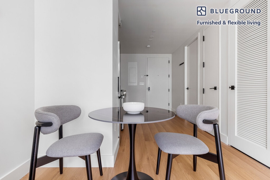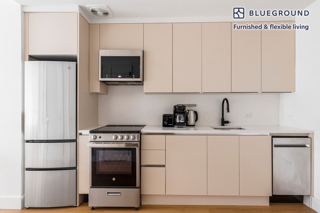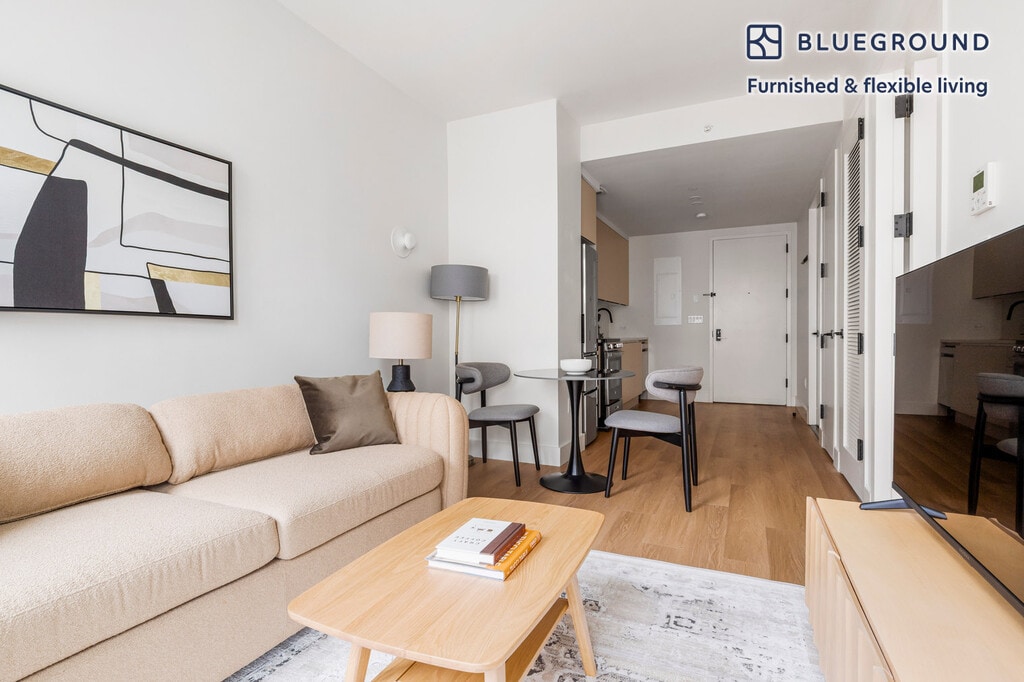 Feel at home wherever you choose to live with Blueground. You’ll love this beautiful Williamsburg furnished one bedroom apartment with its modern decor, fully equipped kitchen, and roomy living room. Ideally located, you’re close to all the best that New York has to offer! (ID #NYC2076) The advertised rate of $5,600/month is the lowest available price, based on a 12 month(s) stay with a move-in date of December 22, 2025. Rates vary depending on the duration of stay, season, and other parameters. For exact pricing and additional pricing components, please visit our website and enter your desired move-in and move-out dates. The rate is applicable when billed upfront; it can be higher if billed in multiple payments. Brokers are welcome to reach out. Were you looking for an unfurnished lease? Try Blueground instead and upgrade from unfurnished to furnished living: - Furnished at rates comparable to unfurnished - No setup or furniture costs - save thousands - Move-in ready - save time, just bring your suitcase Designed with you in mind As with any Blueground apartment, you’ll find a thoughtfully designed space complete with beautiful furniture and a fully equipped kitchen in this one bedroom property. And, thanks to our superior quality mattresses, luxury linens, and towels, you can relax knowing you’ll always feel comfortably at home. When you’re ready for some fun, you can take in the New York vibes or bring the entertainment to you with the premium wireless speaker or smart TV. This apartment also offers in-apartment laundry. Sleeping arrangements Queen Bed, 63in/160cm Amenities Building amenities unique to this one bedroom apartment include an on-site: - Dryer - Elevator - Washing machine - Lounge - Pets allowed - Rooftop BBQ Arrival and ongoing support The entire apartment is yours to enjoy! Throughout your stay, you’ll have access to our Client Experience team through the Blueground App. You can schedule additional cleanings, submit maintenance requests, and view our neighborhood recommendations with just a few taps. We’ll share all details upon confirmation of your stay. Ideally Located This furnished apartment is situated in Williamsburg, known as Brooklyn’s creative outlet. Residents vary from artists and young professionals working in the media or entertainment industries to families. Williamsburg Bridge is great for long strolls, running or biking. Over the weekend, visit Bedford Avenue, which is constantly buzzing with trendy boutiques, fine dining, outdoor day parties and a thriving music scene. East River State Park also offers a great sunset over the Manhattan skyline. Embarking on the L train, you can be in the heart of Manhattan in just a few minutes. Also the M and J trains make it easy to get to other downtown neighborhoods. Other things to note Building amenities may have an extra cost. This Blueground apartment has flexible lease options, allowing you to book it for one month, a year, or more. Pets are welcome, though weight limits and breed restrictions apply and may incur fees. Brokes CYOF. We take great pride in ensuring every photo displayed is shot in our own units with our actual furnishings. That said, we regularly refresh our decor and furniture arrangement, which may differ from what’s pictured.