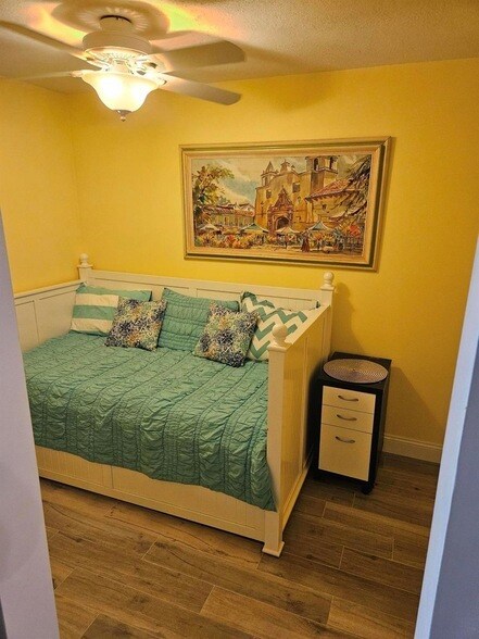Welcome to your slice of the South Florida Life! This fully remodeled, fully furnished villa ticks all the boxes and is available for a min. 4 lease term between January 1, 2026 and May 31, 2026. Plenty of indoor + outdoor space including a large open patio and a BONUS room that currently serves as a 2nd bedroom. Private laundry room is steps away. This 55+ community has loads of amenities including a huge pool (w/a catering kitchen in the clubhouse!), shuffleboard, putting green, and plenty of space to walk or bike. No pets, no smoking, at least 1 tenant must be 55+. Close to it all and approx. 2 miles to the beach! Are you ready for your time in the sun?