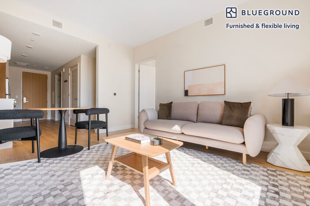 Show up and start living from day one in Washington, D.C. with this bright one bedroom Blueground apartment. You’ll love coming home to this thoughtfully furnished, beautifully designed, and fully equipped Navy Yard home. (ID #WDC1198) The advertised rate of $1,860/month is the lowest available price, based on a 2 month(s) and 5 day(s) stay with a move-in date of January 12, 2026. If you’re looking for a 1-year stay, the rate is $2,170/month. Rates vary depending on the duration of stay, season, and other parameters. For exact pricing and additional pricing components, please visit our website and enter your desired move-in and move-out dates. The rate is applicable when billed upfront; it can be higher if billed in multiple payments. Brokers are welcome to reach out. Were you looking for an unfurnished lease? Try Blueground instead and upgrade from unfurnished to furnished living: - Furnished at rates comparable to unfurnished - No setup or furniture costs - save thousands - Move-in ready - save time, just bring your suitcase Designed with you in mind As with any Blueground apartment, you’ll find a thoughtfully designed space complete with beautiful furniture and a fully equipped kitchen in this one bedroom property. And, thanks to our superior quality mattresses, luxury linens, and towels, you can relax knowing you’ll always feel comfortably at home. When you’re ready for some fun, you can take in the Washington, D.C. vibes or bring the entertainment to you with the premium wireless speaker or smart TV. This apartment also offers in-apartment laundry. Sleeping arrangements Queen Bed, 63in/160cm Amenities Building amenities unique to this one bedroom apartment include an on-site: - Dryer - Elevator - Swimming pool - Washing machine - Lounge - Parking - Pets allowed - Rooftop BBQ Arrival and ongoing support The entire apartment is yours to enjoy! Throughout your stay, you’ll have access to our Client Experience team through the Blueground App. You can schedule additional cleanings, submit maintenance requests, and view our neighborhood recommendations with just a few taps. We’ll share all details upon confirmation of your stay. Ideally Located This furnished apartment is situated in the heart of Navy Yard, conveniently located a block away from the Navy Yard Metro and across the street from Nationals Park. This fast-growing neighborhood is now a main attraction in DC, due to its proximity to the Southwest Waterfront and abundance of activities for locals and visitors alike. Visit Canal Park and explore the seasonal markets and events, grab dinner and drinks at a local brewery or upscale Italian restaurant and top it off with Ice Cream Jubilee for delicious, creative flavors of hand-made ice cream. Also be sure to check out the rooftop of the brand-new building where our luxury Blueground apartment is located for sweeping views of the city and even a direct view into Nats Park! Other things to note Building amenities may have an extra cost. This Blueground apartment has flexible lease options, allowing you to book it for one month, a year, or more. Pets are welcome, though weight limits and breed restrictions apply and may incur fees. Parking is offered based on availability and is subject to a fee. We take great pride in ensuring every photo displayed is shot in our own units with our actual furnishings. That said, we regularly refresh our decor and furniture arrangement, which may differ from what’s pictured. Also note - This apartment is near a stadium and can be noisy on game nights [SI]