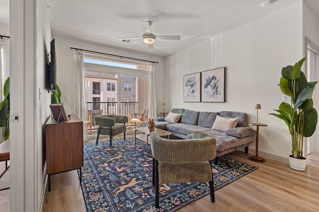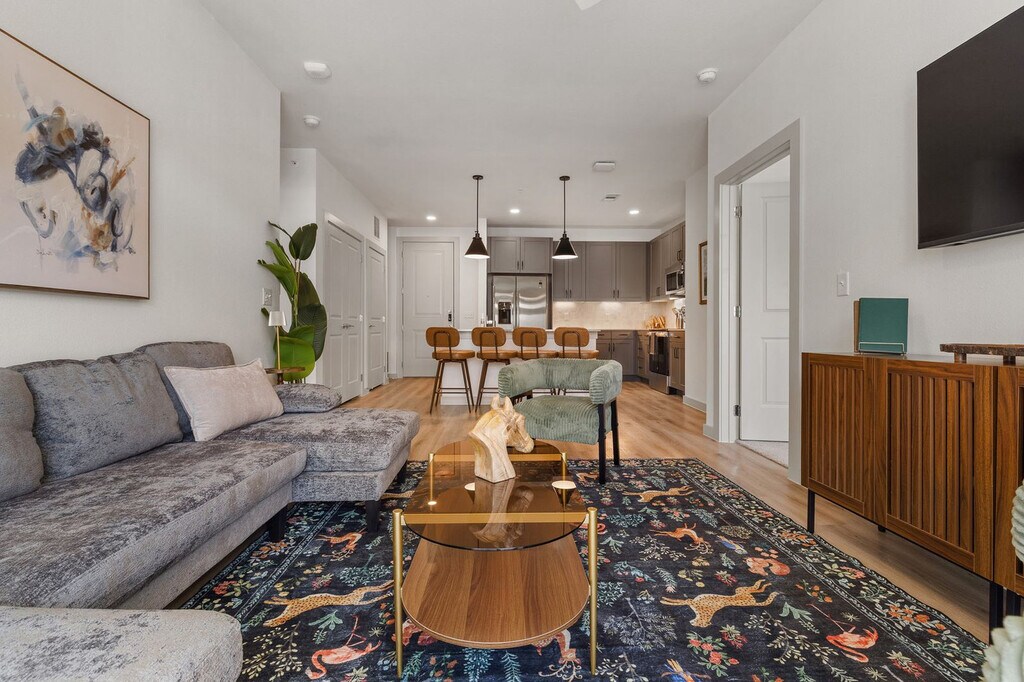 The advertised rate of $3,330/month is the lowest available price, based on a 30 day(s) stay with a move-in date of May 19, 2026. Rates vary depending on the duration of stay, season, and other parameters. For exact pricing and additional pricing components, please visit our website and enter your desired move-in and move-out dates. The rate is applicable when billed upfront; it can be higher if billed in multiple payments. Feel at home in this polished second-floor 2-bedroom, 2-bathroom residence at The Merriman, featuring a private balcony and airy open-concept design. The sleek kitchen features quartz countertops, stainless steel appliances, and a spacious island ideal for gathering. Large windows fill the home with natural light, enhancing the clean lines and soft contemporary finishes. We provide instant coffee and an electric kettle. An in-unit washer and dryer provide everyday convenience. Pets are allowed for an additional cleaning fee of $50, but no aggressive breeds are permitted. Some properties have paid parking. Be sure to check the amenities section of the listing. An artisanal coffee bar is available in the lobby of the leasing office which is free to use and offers specialty drinks from 9-5pm. Check-in is after 4:00 pm and check-out is before 11:00 am. There is a $200 fee for noise disruptions, with possible removal from the property. Quiet hours are between 9pm and 9am. No smoking is allowed inside the unit, building, or on any balconies, and there is a $1,000 fee for odor abatement if you smoke in the apartment, hallways, common areas, or if cigarette butts are left on the grounds. No parties or events and no outside guests are allowed. Only those added to the reservation are allowed on the property. [SI]