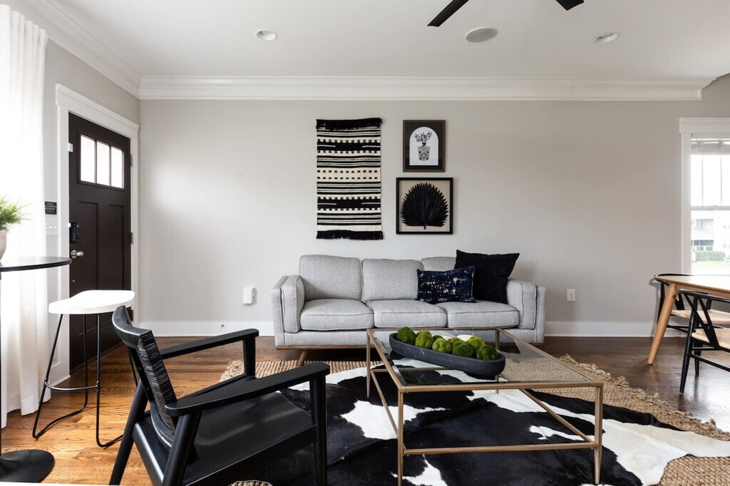 Welcome to the Edgehill House, a beautifully designed 3-story townhome that offers everything for an unforgettable urban escape. With a cozy living room, bright layout, and all the Nashville vibes, this home is just steps from Belmont University and within walking distance to the shops and restaurants of 12 South and Edgehill. It's less than two miles from the vibrant action and nightlife of Broadway. You'll love the location across the street from Belmont University and the ability to walk to the shops and restaurants of Edgehill, Hillsboro Village, and 12 South. Each bedroom features an en-suite bathroom, and the fully equipped kitchen boasts an open layout. Enjoy reliable Wi-Fi, a dedicated workspace, smart TVs for streaming your favorite apps, central heating and AC for year-round comfort, and private laundry facilities with a washer and dryer. The property also includes a 2-car garage and plenty of street parking. This dog-friendly property welcomes up to 2 dogs with a pet fee of $150 per stay, with no breed or weight restrictions. Located directly across from Belmont University in the heart of the trendy Edgehill neighborhood, this home puts you within 10 minutes of everything Nashville has to offer. Enjoy the nearby coffee shop, Makai, and a smoothie shop next door, plus a short walk to great restaurants and shops in Edgehill. Favorites include Barcelona, Sadie's, and Old Glory Cocktail Bar. Commute times by car are 5 minutes to The Gulch, 12th South, and Vanderbilt, 7 minutes to Broadway, 8 minutes to Nissan Stadium, 10 minutes to Five Points in East Nashville, and 12 minutes to Germantown and Sounds Stadium. Quiet hours are from 10 p.m. to 8 a.m. Renters must be at least 21 years of age, and guests under the minimum age must be accompanied by a parent or legal guardian. The property shall not be used by more than the number of adults and children listed in your reservation. Pets are not permitted unless specifically noted in your reservation. No smoking is permitted on the property, including porches, decks, or outdoor areas, at any time. All guests shall not engage in illegal activity. Refrain from using decorations that include glitter or confetti or using tape, tacks, or other adhesive on the surfaces. There will be an additional cleaning fee of up to $500 for violations of the house rules or for excessive cleaning required. Includes reliable Wi-Fi and a dedicated workspace, though a laptop computer is not included. Registration Number: CASR [SI]